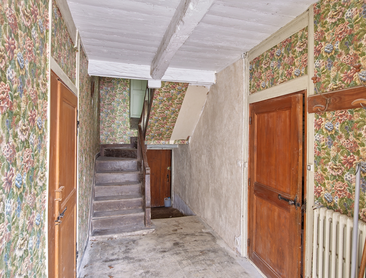 Vestibule d'entrée avec portes d'accès à l'appentis nord. Vue généraleImmatriculation