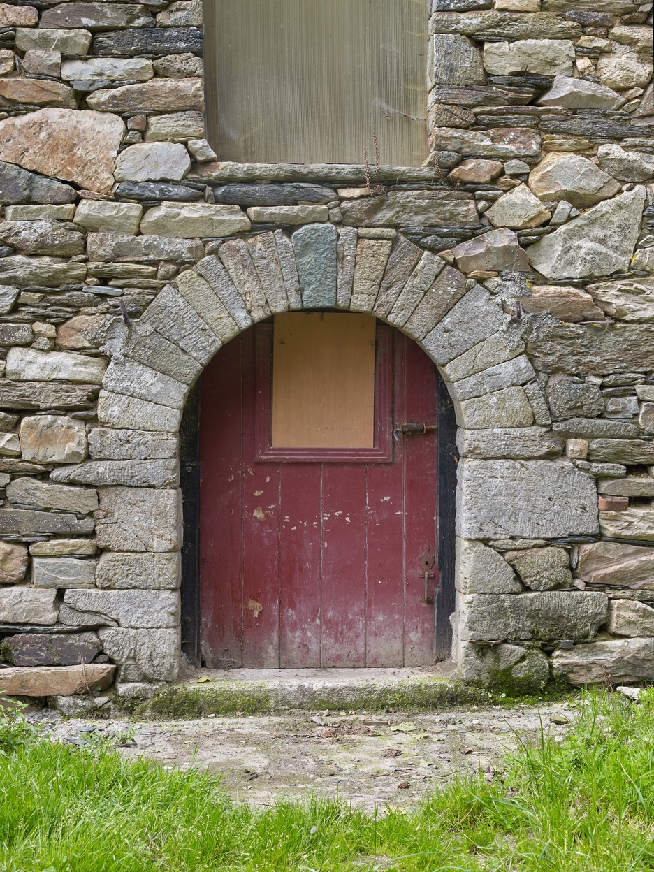 Logis-étable. Façade sud-est. Porte cintrée à claveaux de schiste très soignésImmatriculation
