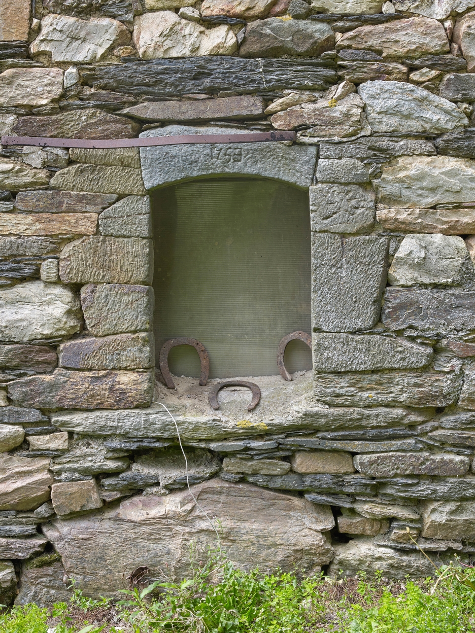 Logis-étable 1753. Fenêtre de la salle en pierre de taille de schiste, datée 1753Immatriculation