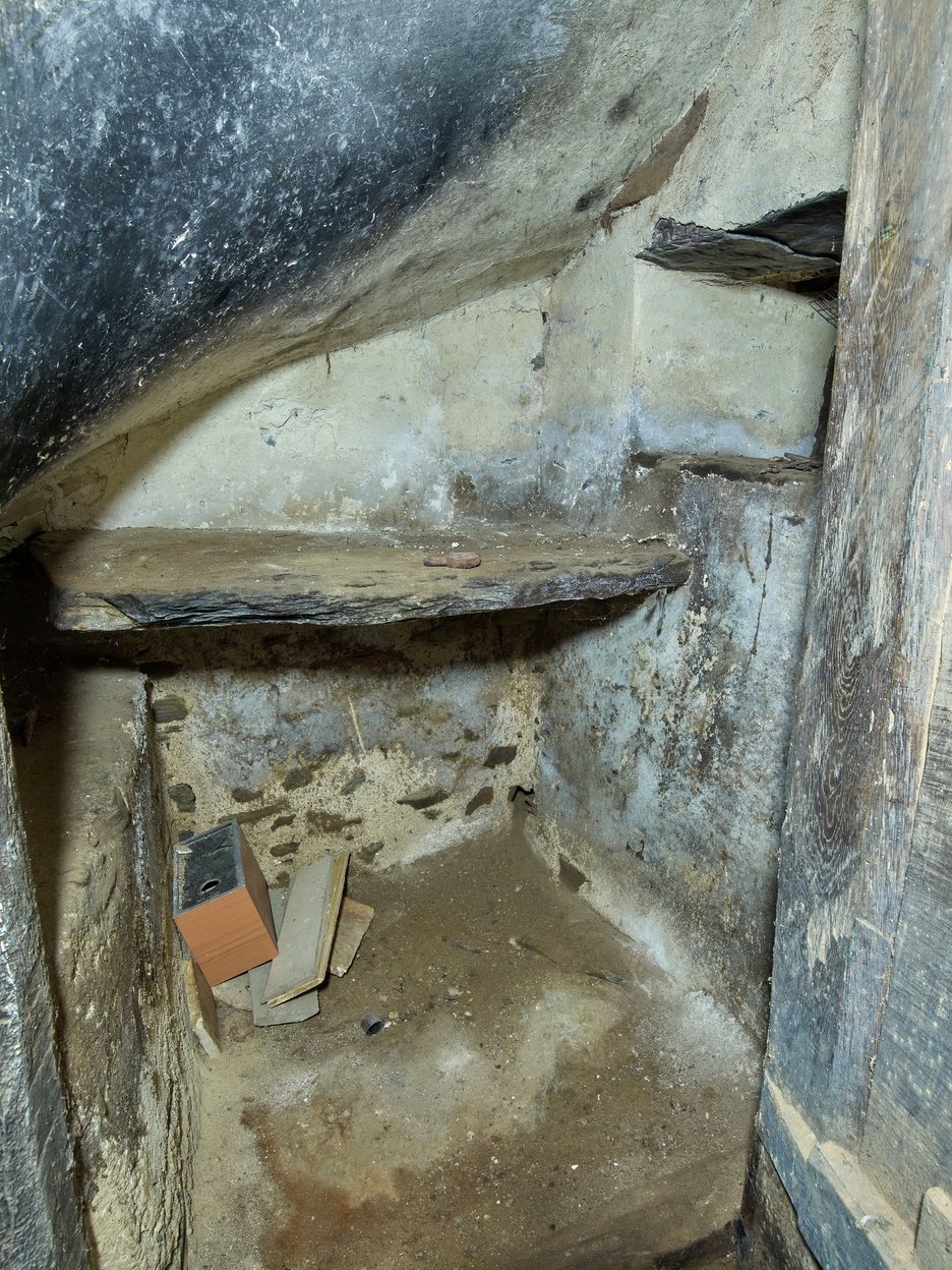 Logis 17e siècle. Placard sous l'escalier en vis, avec étagère en schisteImmatriculation