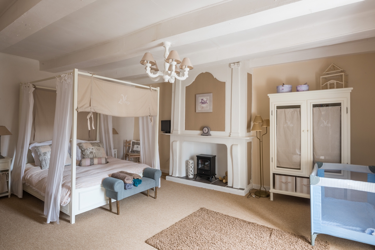 Logis. Chambre de l'étage. Vue générale avec la cheminéeImmatriculation