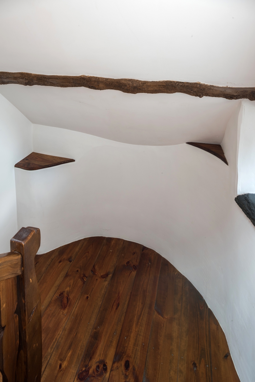 Logis ouest, palier intermédiaire avant le comble, arrondi du mur formé par l'ancien escalier en visImmatriculation