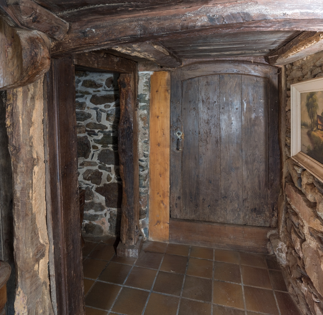 Logis 1774. Vestibule d'entrée. Espace de rangement sous l'escalier et porte d'accès à l'appentis postérieurImmatriculation