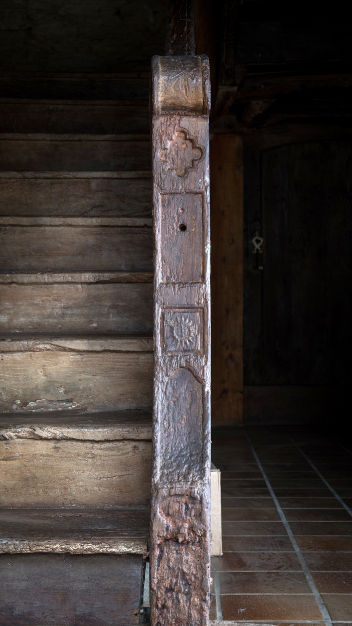 Logis 1774. Vestibule d'entrée. Escalier tournant à retours avec jour. Détail du départ de rampeImmatriculation