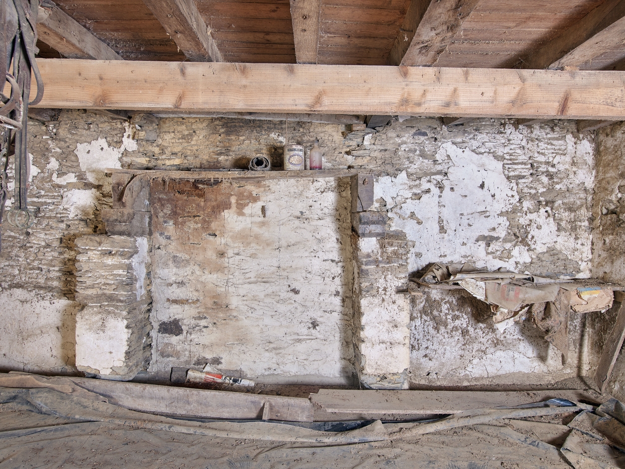 Logis. Chambre de l'étage. Vestiges de la cheminée sur le pignon ouestImmatriculation