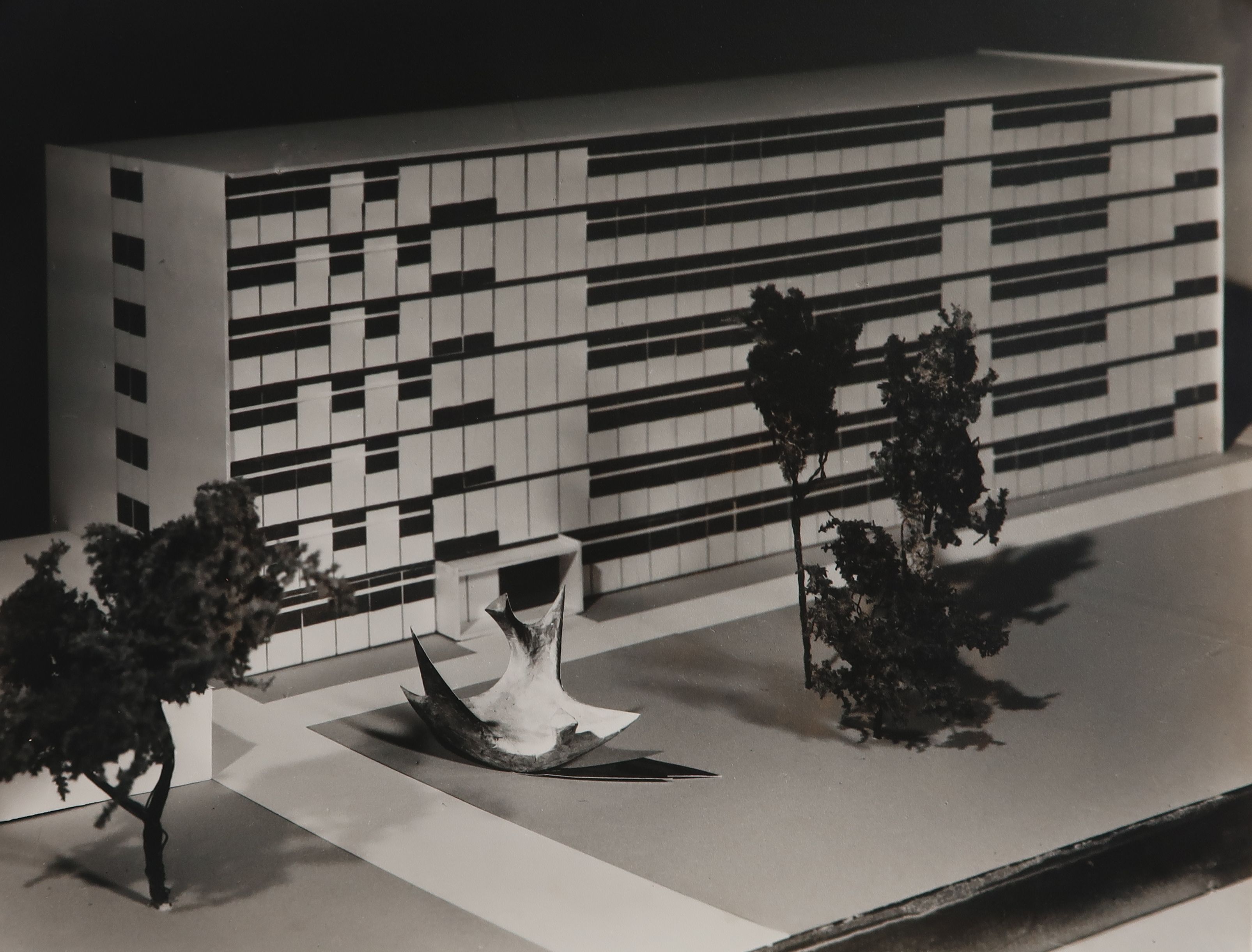 Maquette de la façade est du bâtiment B (internat et logements). André Remondet et Patrice Simon, architectes, 1966.Immatriculation