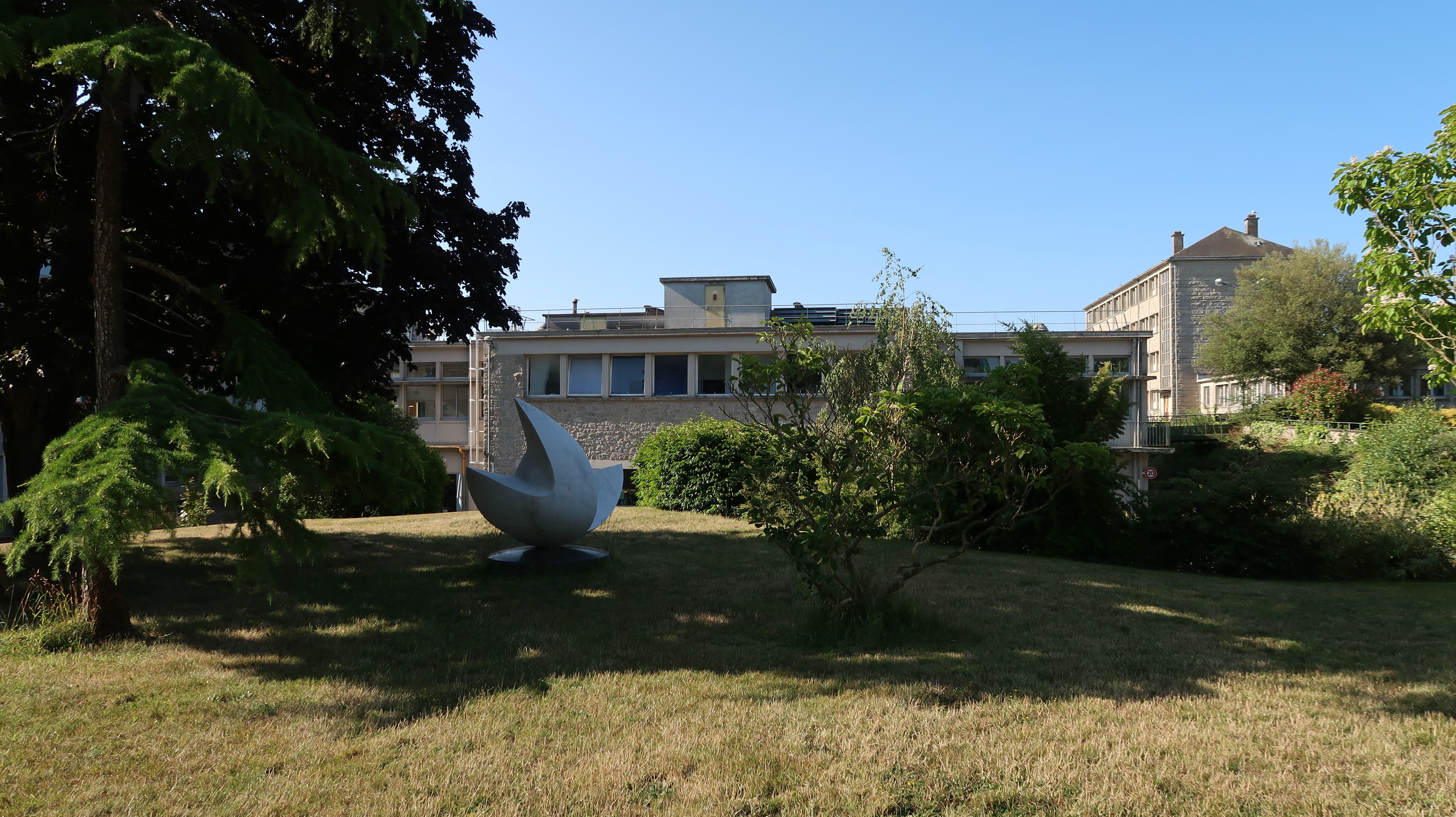 Viliano Tarabella : "Envol", sculpture en marbre, vers 1975-1976. Vue de situation, prise du nord.Immatriculation