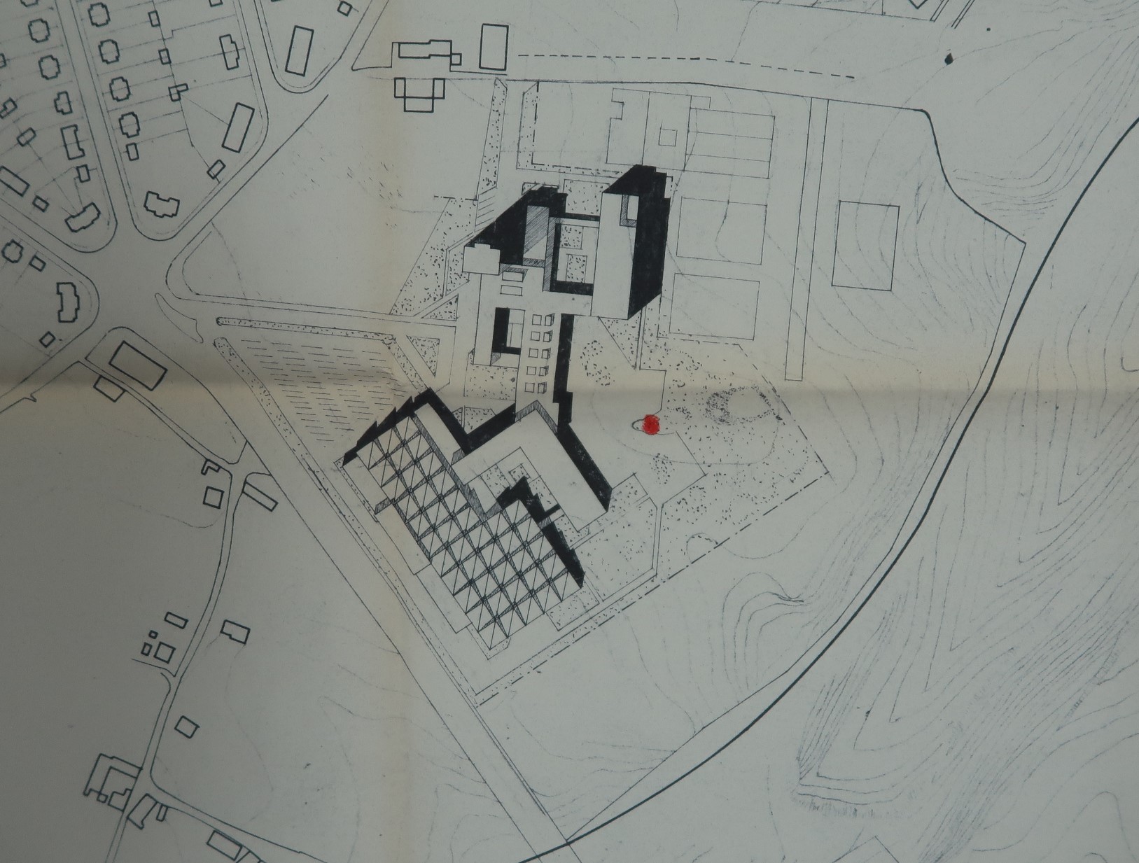 Plan de masse du lycée. Yves Moignet, architecte, mars 1967 (emplacement de la sculpture, vers 1973)Immatriculation