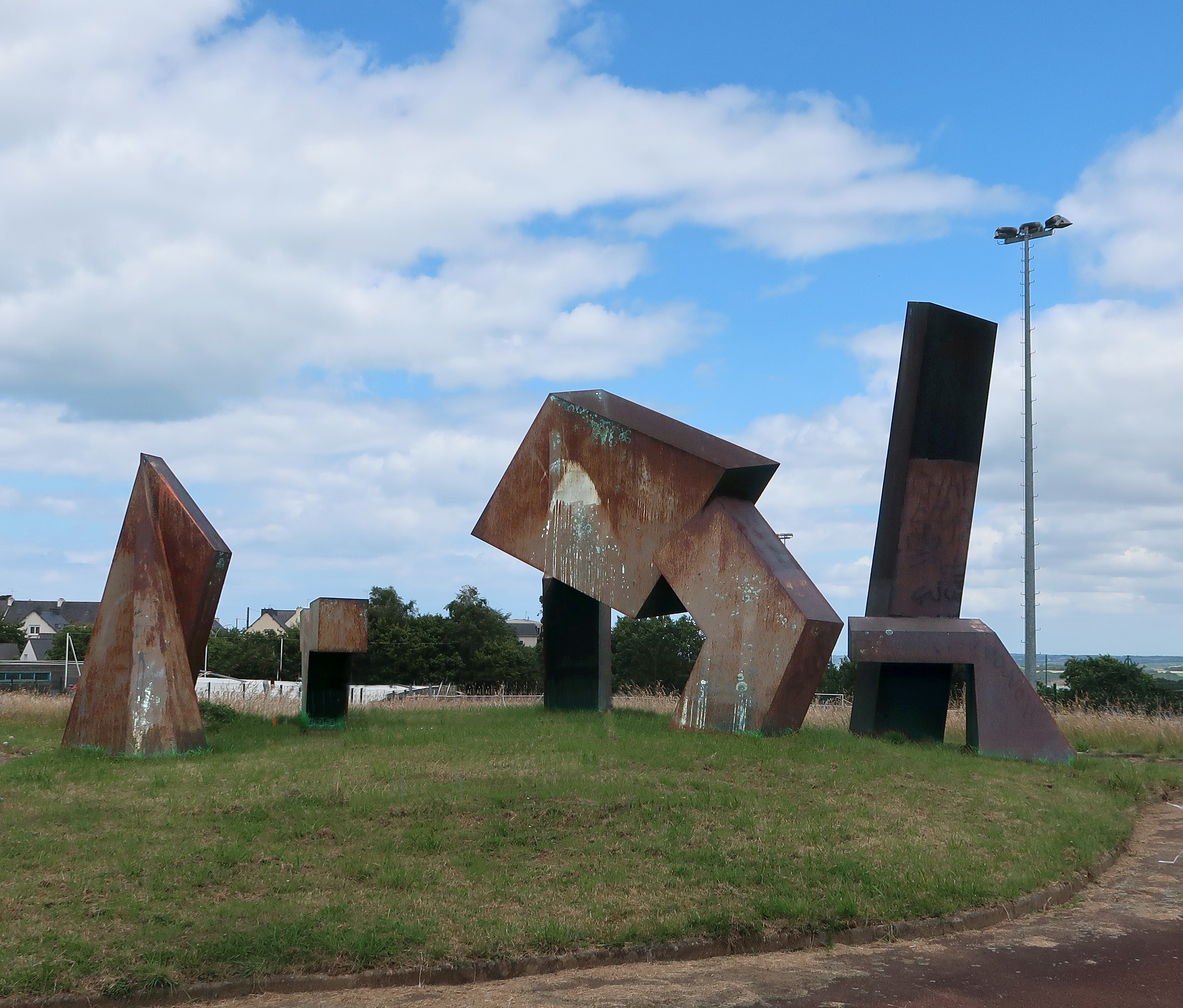Vue d'ensemble prise du sud-ouest de la sculpture de Pierre Tual, vers 1975-1976.Immatriculation