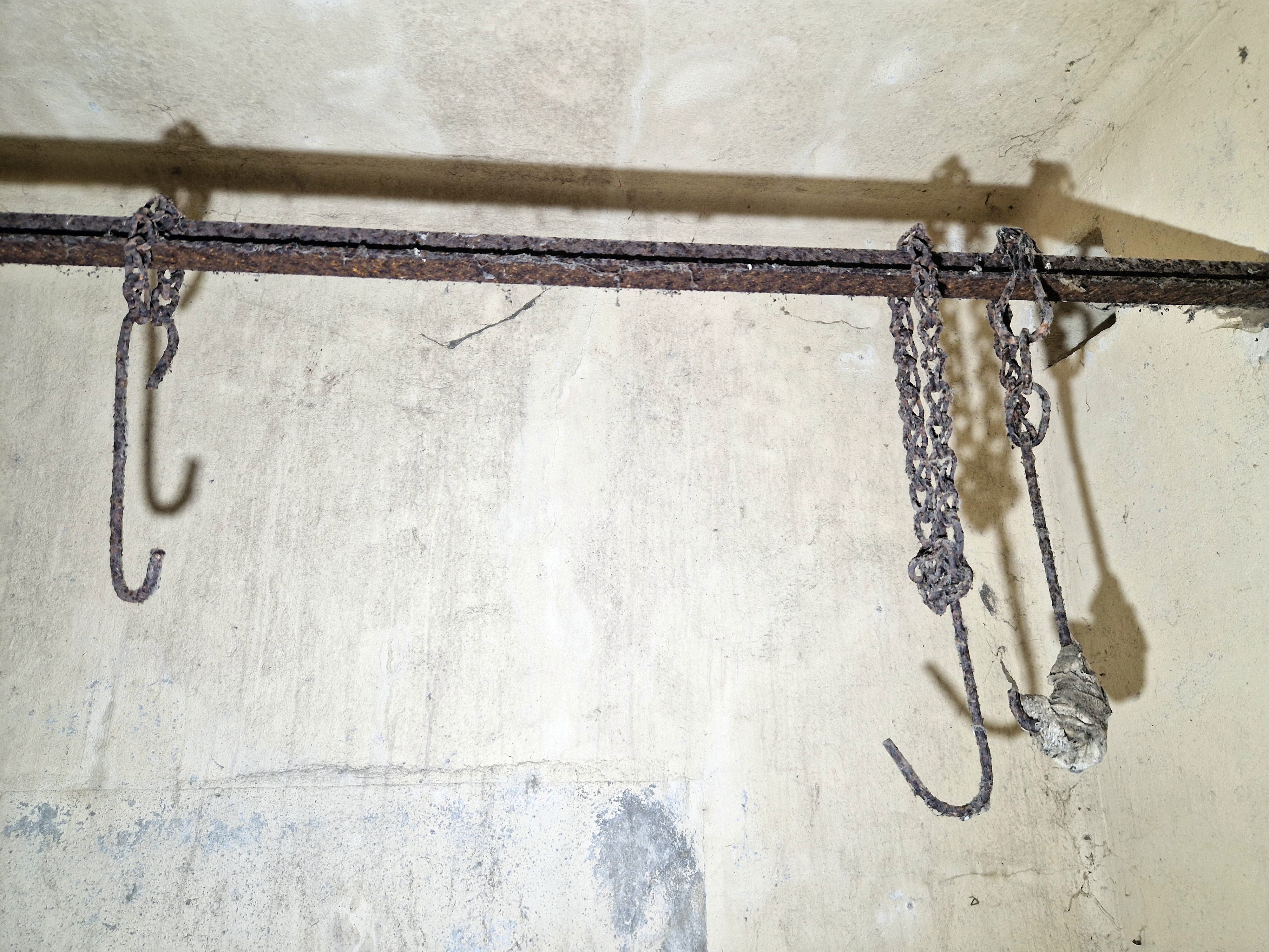Vue de la petite pièce ouest située au fond : système de suspension (fonction non identifiée)Immatriculation