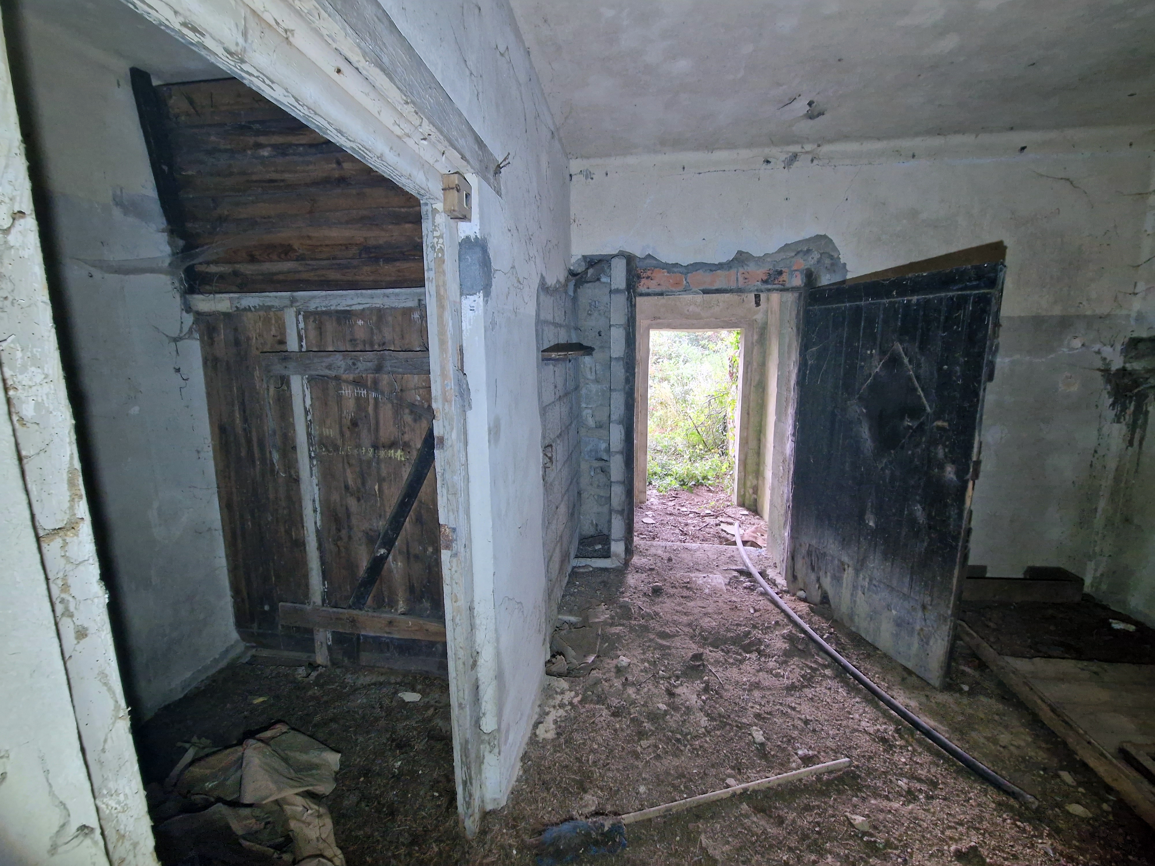 Vue de la communication avec le couloir est. Au fond, l'entrée de la pièce ouest avec sa porteImmatriculation