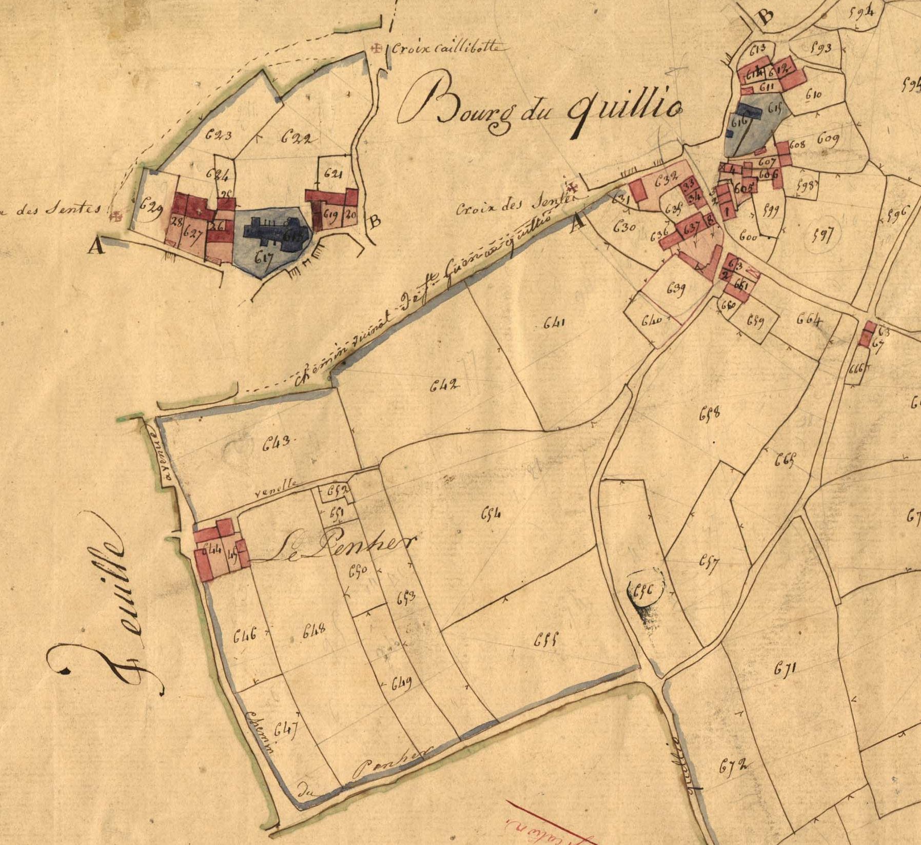 Le Penher en 1828. Extrait du cadastre ancien, section C2 (Archives départementales des Côtes-d'Armor, série 3 P, sous série 3 P 265)Immatriculation