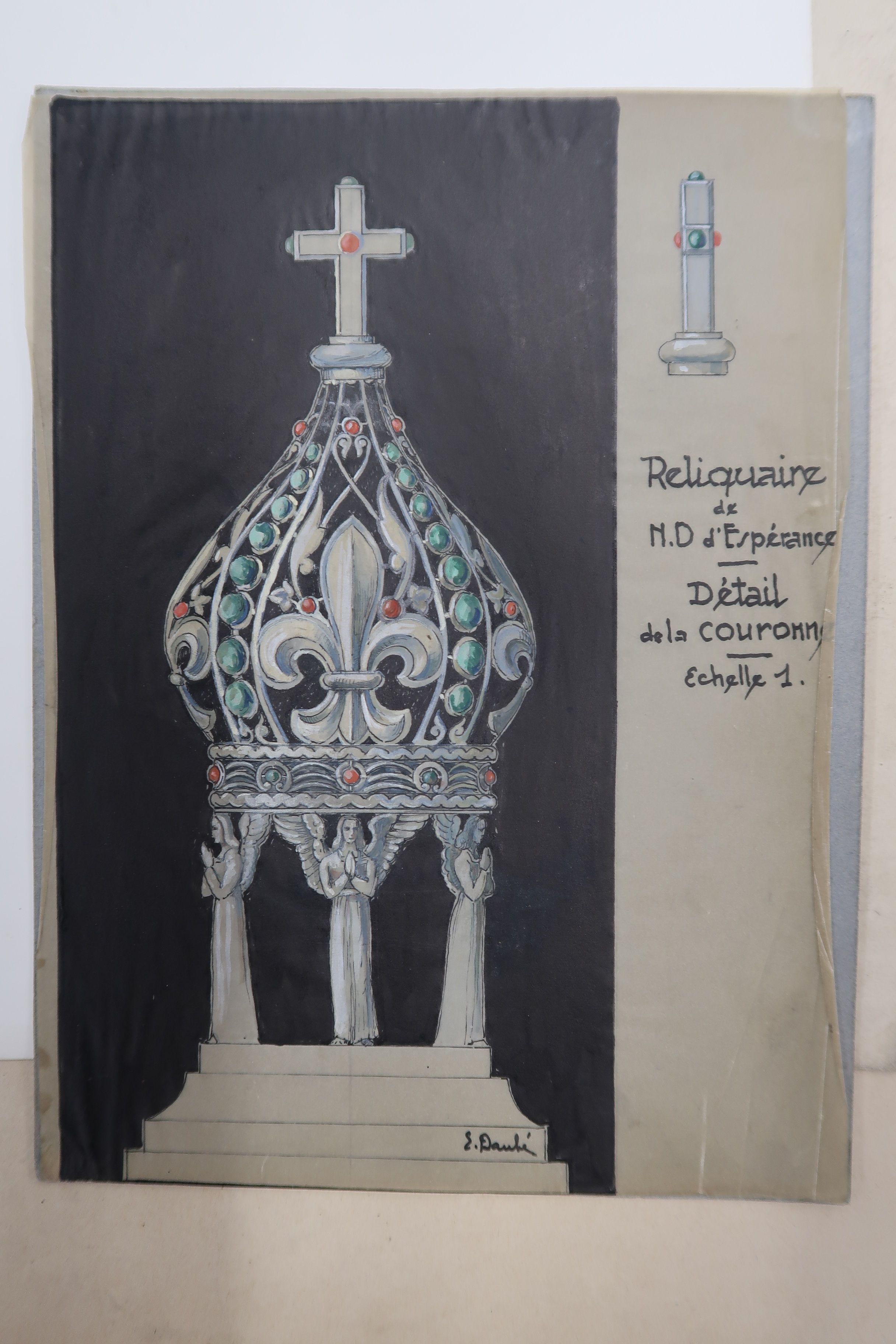 Projet pour la couronne du reliquaire du vœu de 1939-1945, dessin conservé aux Archives départementales des Côtes-d'Armor