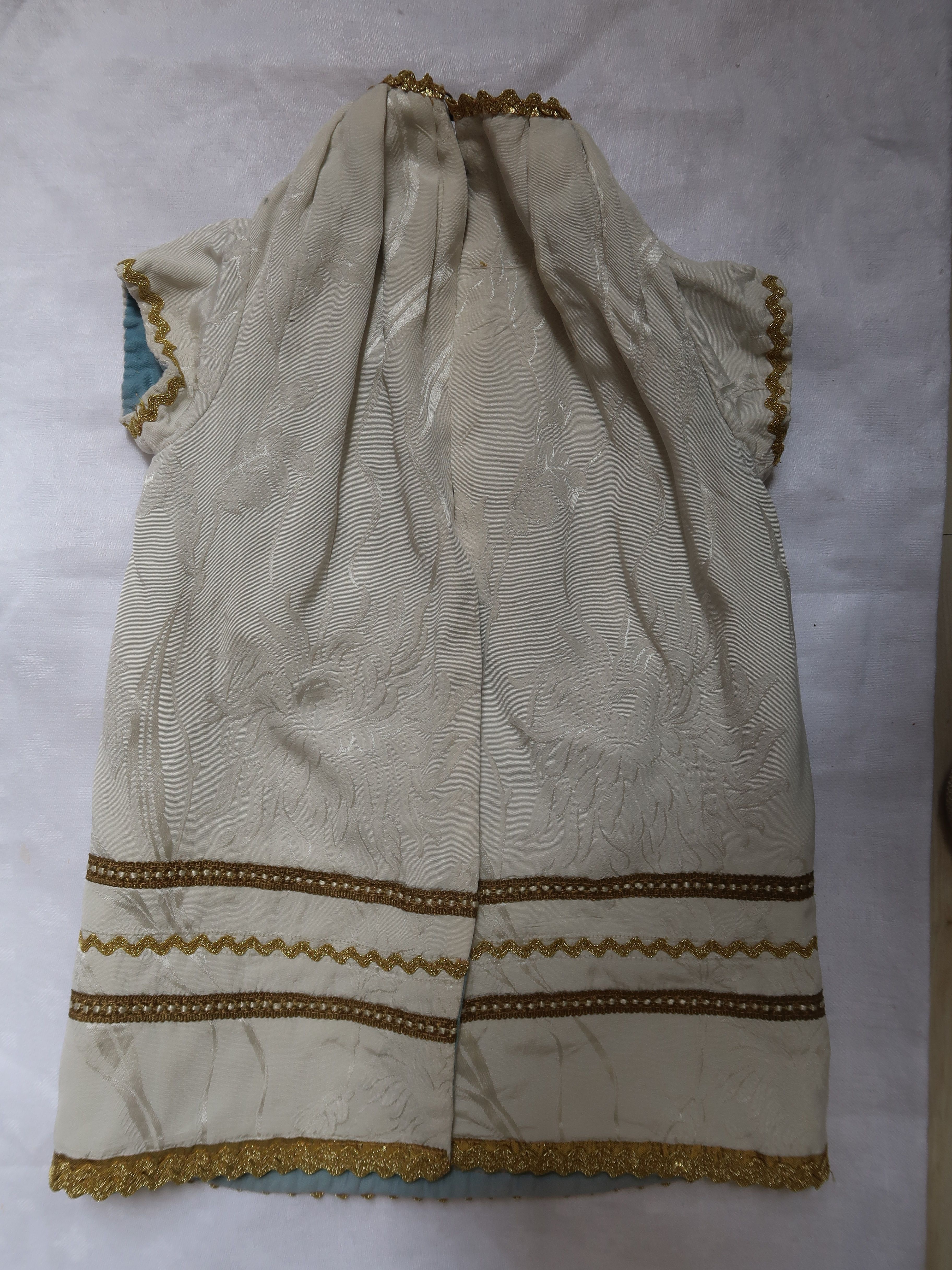 Costume de la statue de Notre-Dame de Délivrance : tablier de la Vierge, tunique et manteau du Christ, basilique Notre-Dame-de-Délivrance (Quintin),