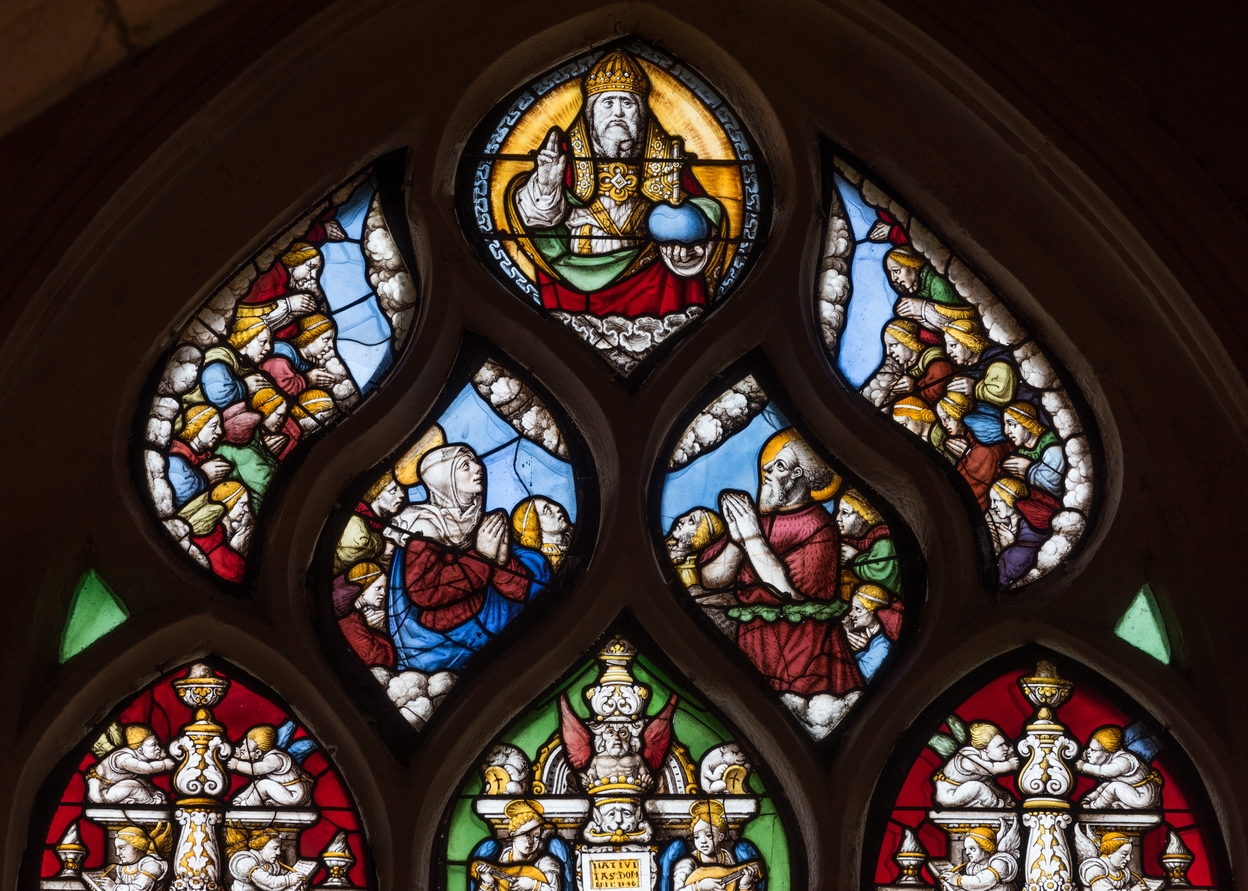 Détail des ajours représentant la Vierge et saint Joseph en prière devant Dieu le PèreImmatriculation