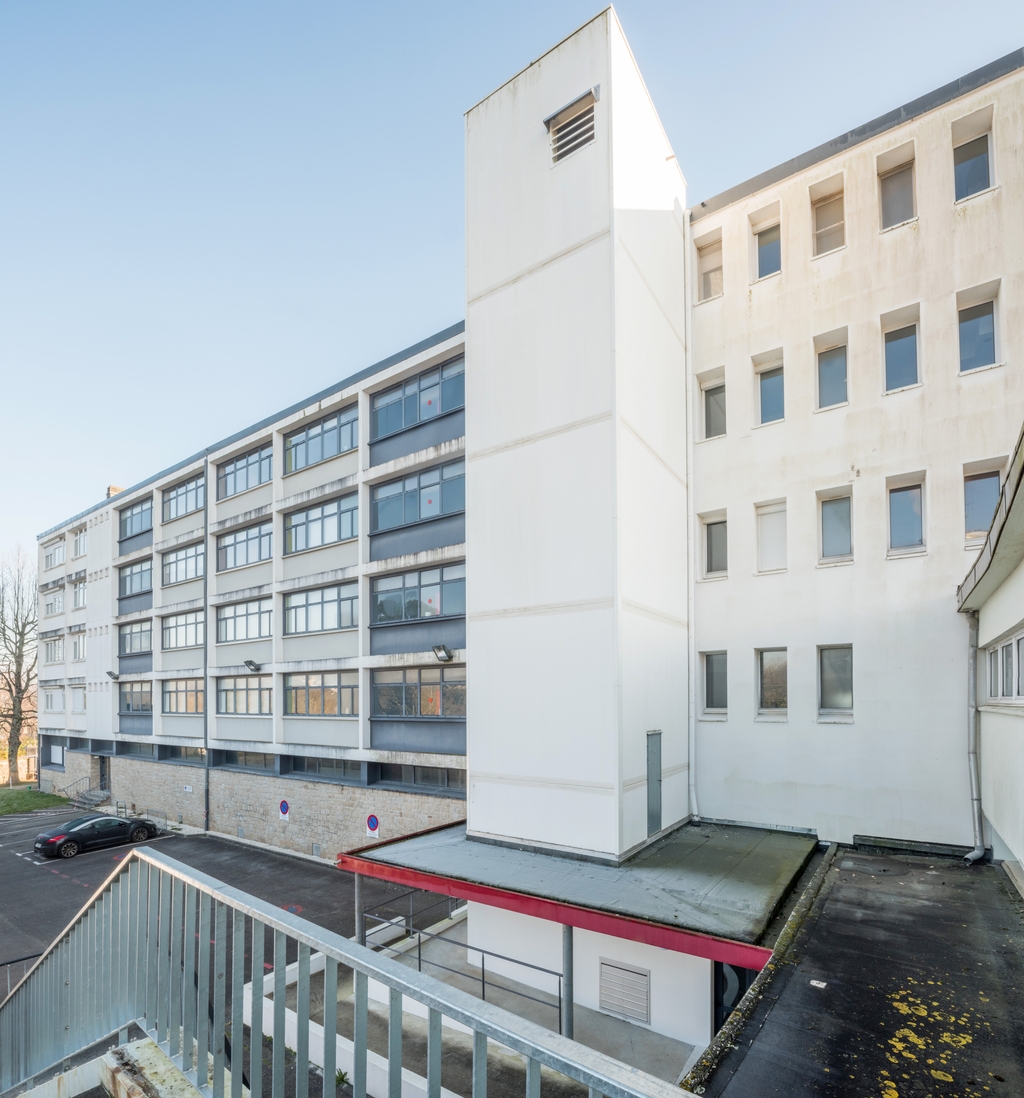 Façade ouest de l'internat filles. Raymond Lopez, architecte, 1958.Immatriculation