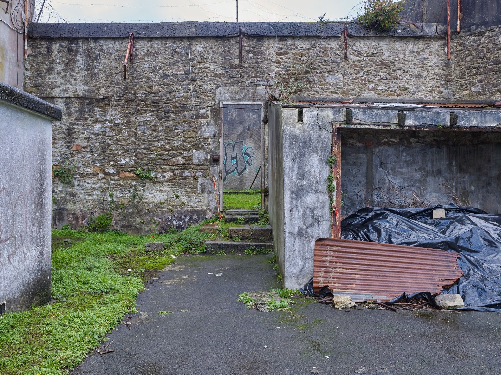 Vue du mur de clôture nord : au centre, porte de la cour nord. Elle est précédée de quelques marches. A droite, bâtiment accolé au mur de clôture ; à gauche, bâtiment accolé à l'élévation est du bâtiment carcéralImmatriculation