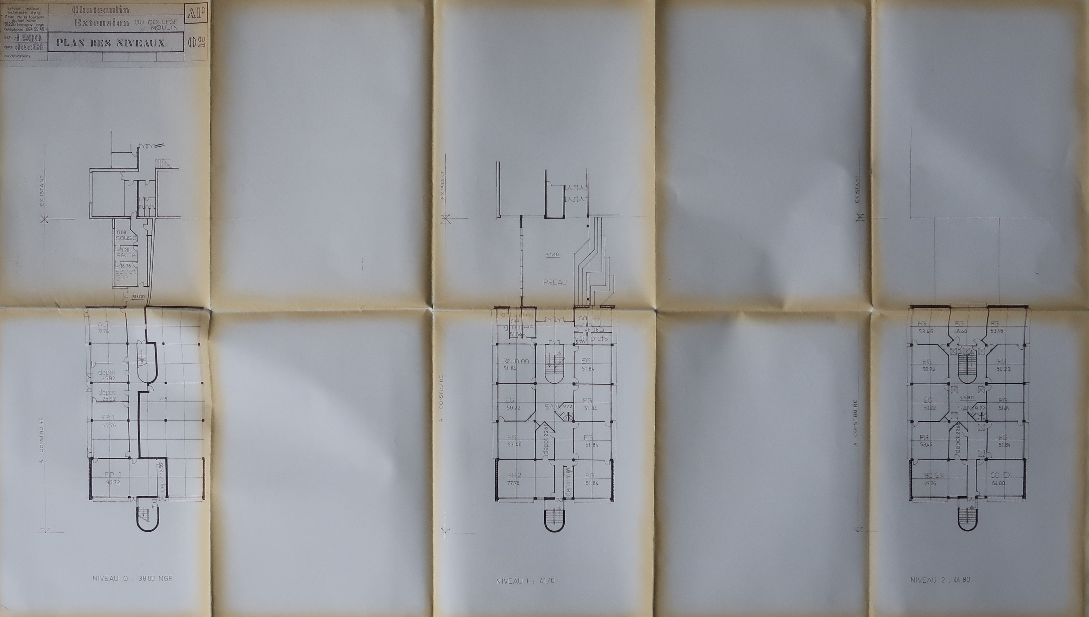 Extension du collège Jean Moulin. Plan des niveaux. Sylvain Malizan, architecte, 1981.Immatriculation