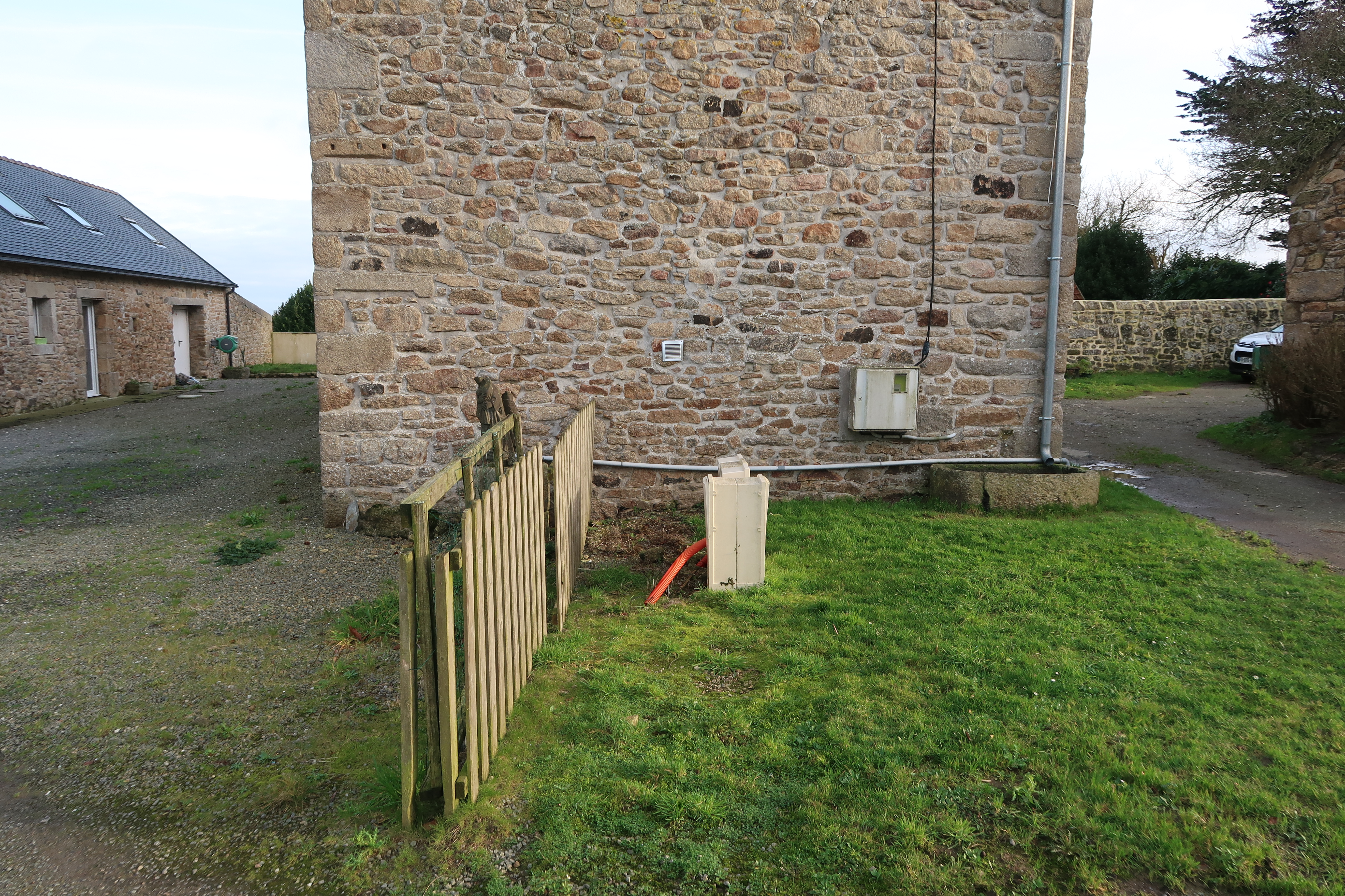 Vue de la statue sommitale d'origine du calvaire située dans la cour de l'ancienne ferme de La SalleImmatriculation