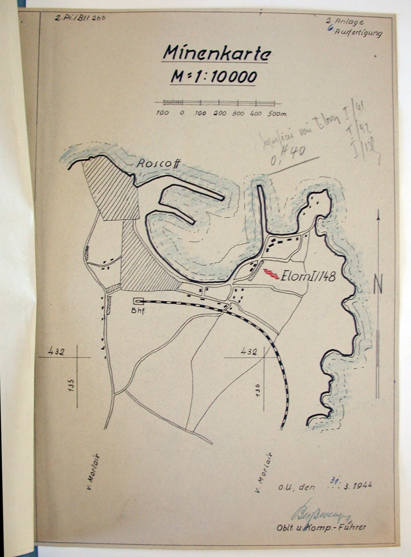 Plan général du champ de mines Elorn I/148 posé le 31 mars 1944 (2./Pi./Btl. 266 : 57727C)