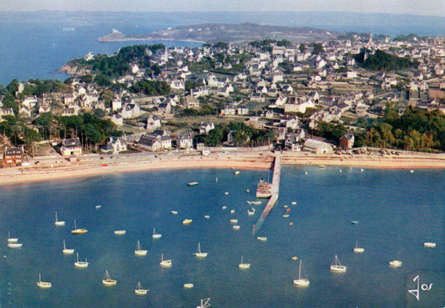Vue aérienne oblique du Port de Carantec, carte postale, éditions JosImmatriculation