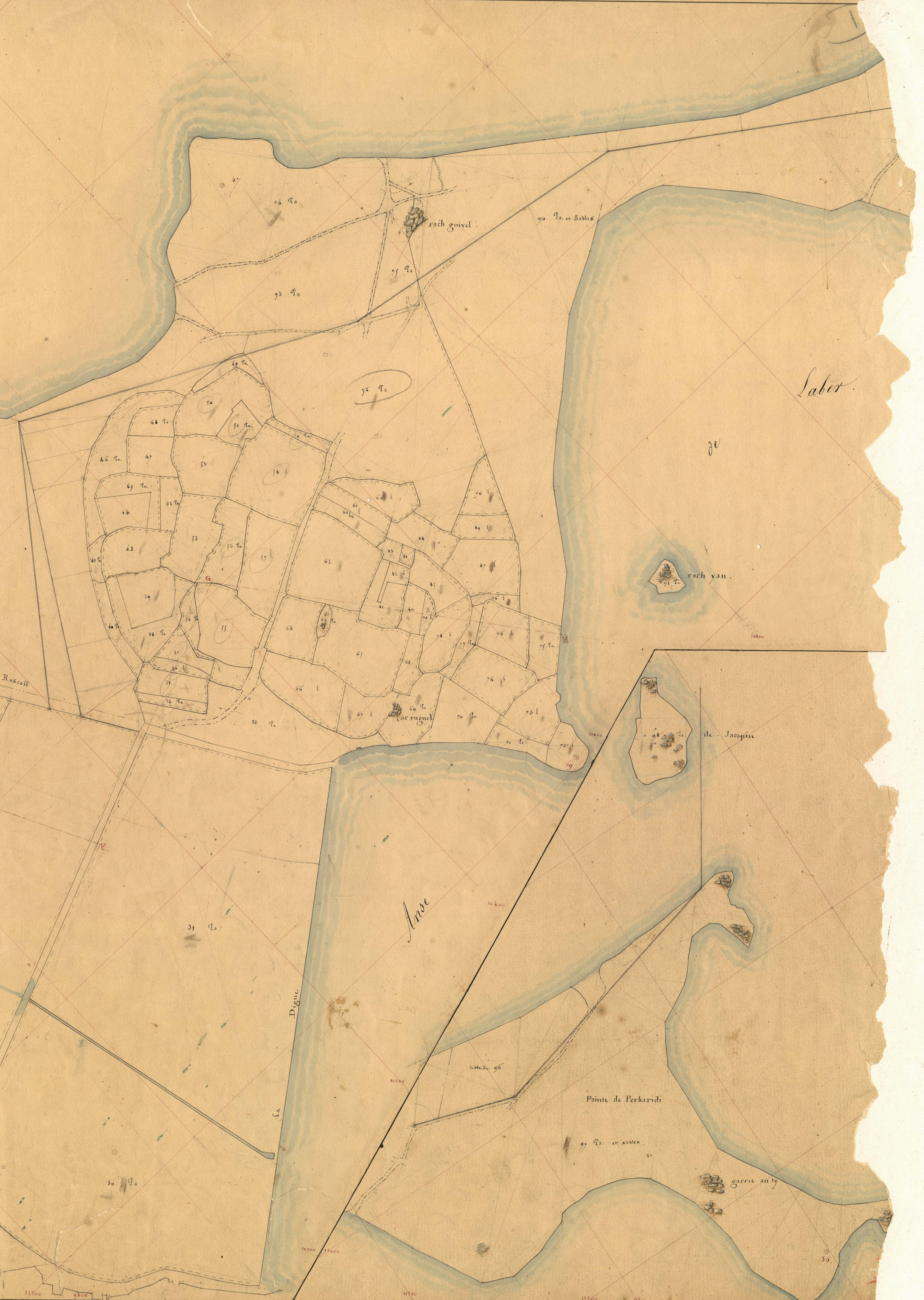 Extrait du cadastre parcellaire de Roscoff : Pointe de Perharidi et Île Jacopin, 1846Immatriculation