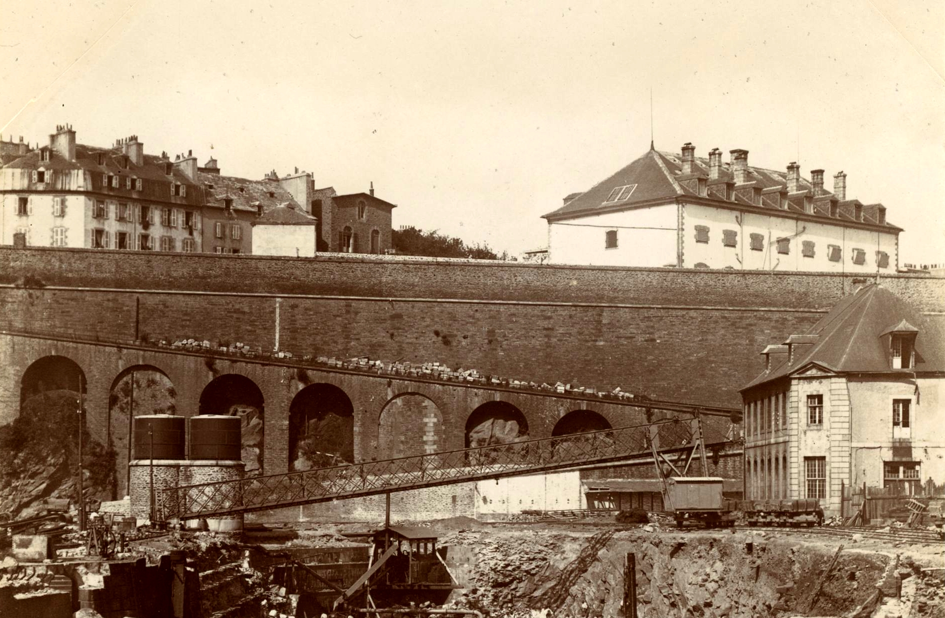 Vue des bassins des formes de Pontaniou en 1899 lors des travaux d'agrandissement.