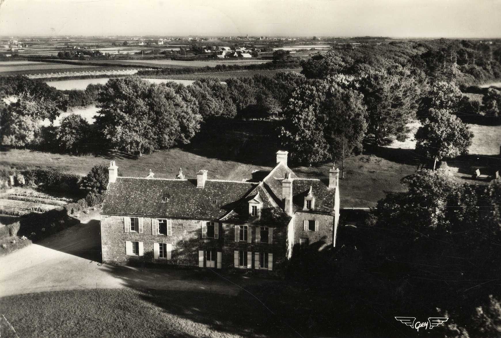 Vue générale oblique du château de Kermenguy depuis le Nord, carte postale (Gaby).
