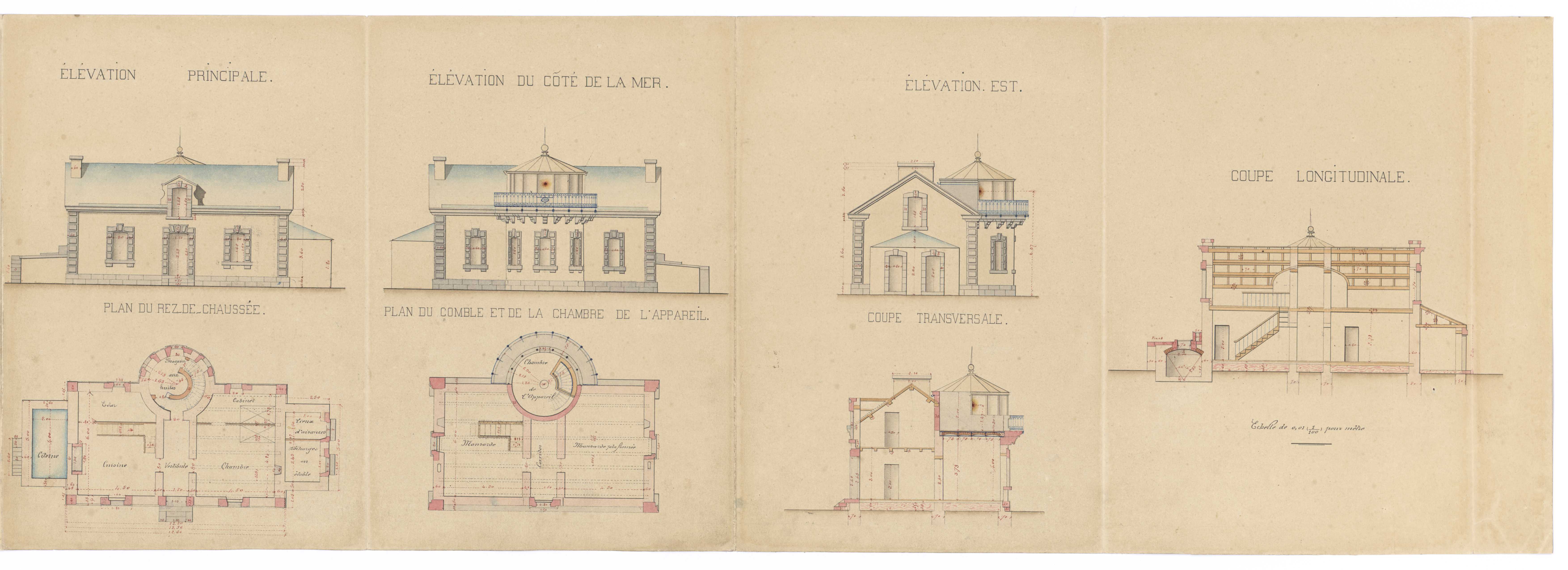 Plans de l'édifice principal, citerne et bâtiments annexes par M. Harel de La Noë, ingénieur ordinaire. 22 avril 1879Immatriculation