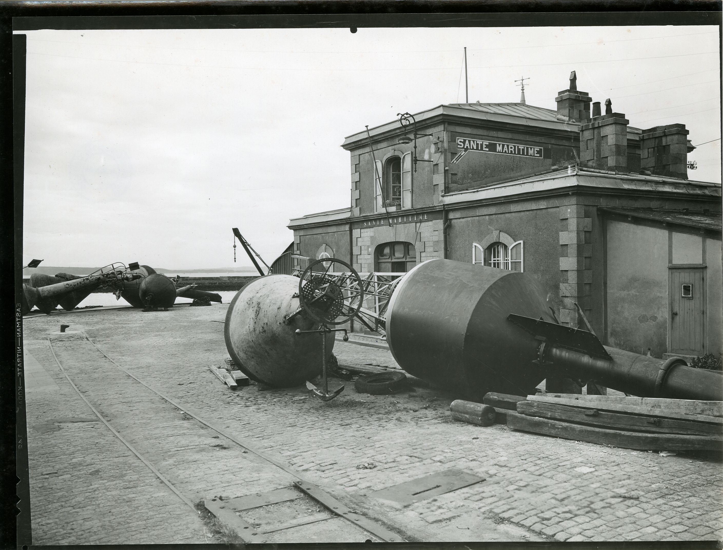 Parc de balisage et bâtiment Santé Maritime, quai de la Santé (futur quai Malbert), 1938. Photo A. Trauner, repérage film RemorquesImmatriculation