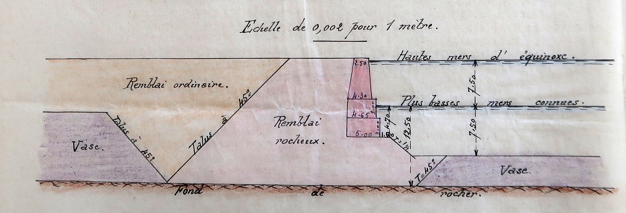Profil type des quais et remblais des ouvrages portuaires des années 1860 (rapport Ponts-et-Chaussées, 02/1931, extrait)Immatriculation