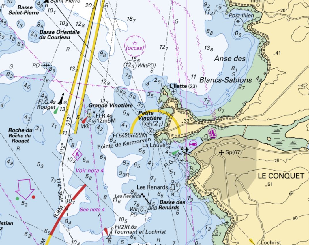 Carte marine : navigation et signalisation des dangers à proximité du Conquet et de Keroman (source SHOM)Immatriculation