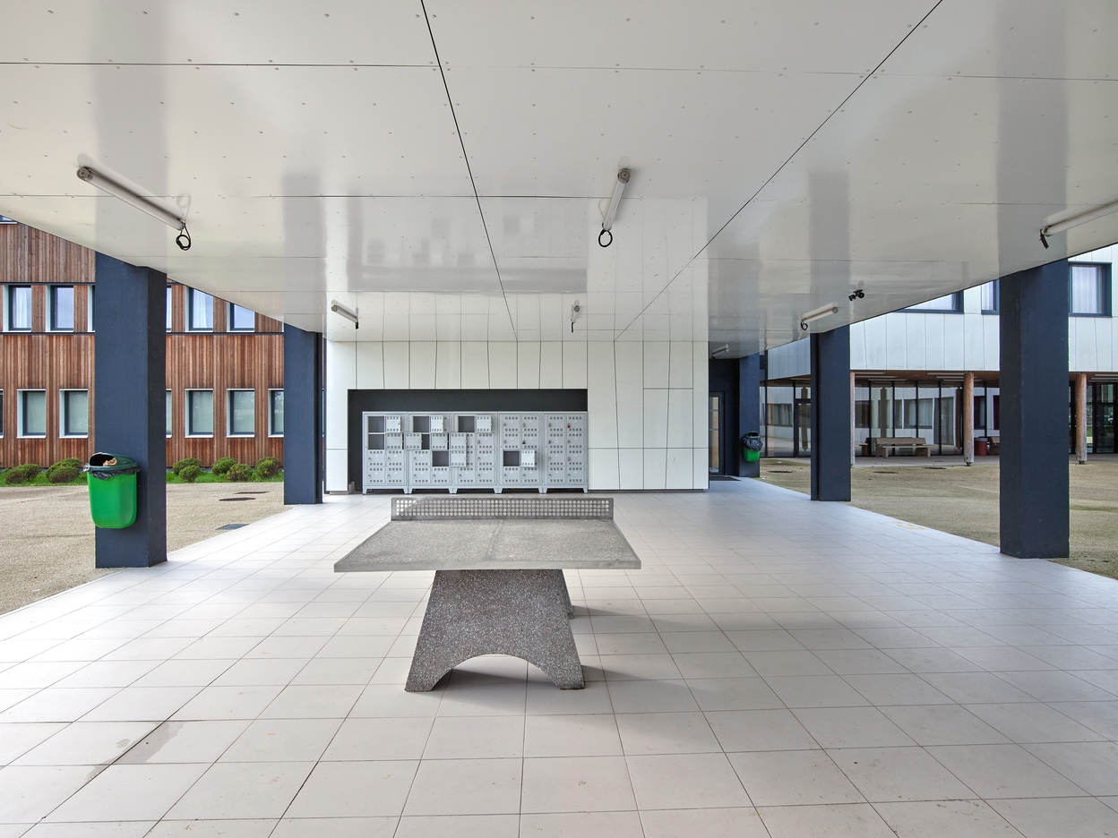 Préau de l'externat. Vue prise dans l'axe, de l'est vers l'ouest.Immatriculation