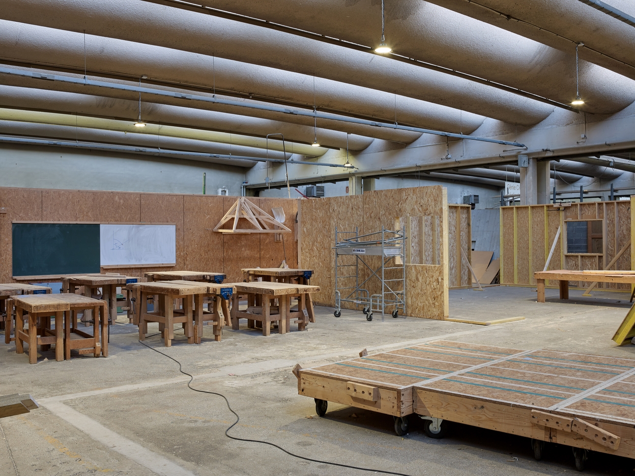 Vue intérieure des ateliers : menuiserie.Immatriculation