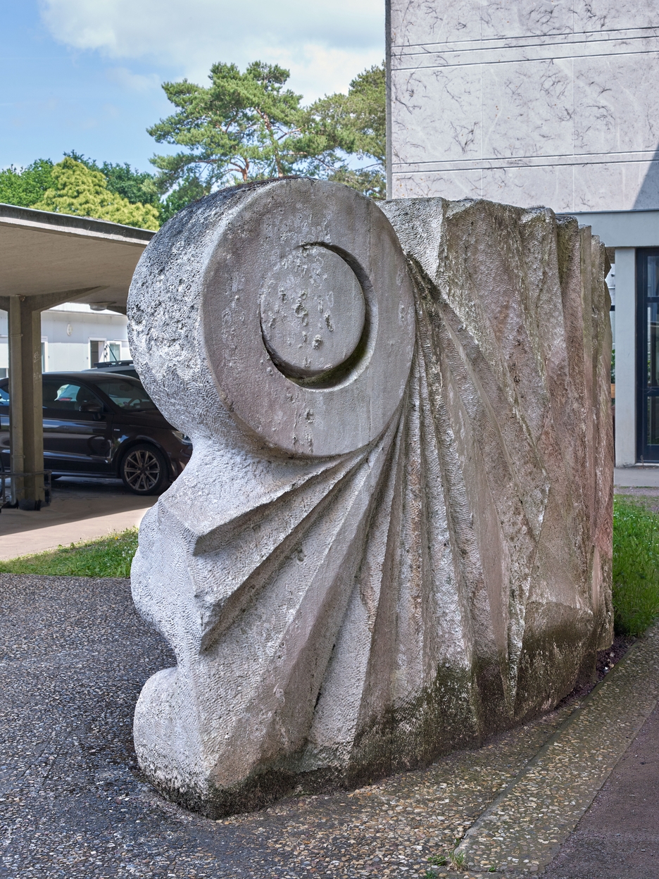 Sculpture "Coupe-Vent" de Yazuo Mizui (1976) : vue partielle de l'un des deux murs.Immatriculation