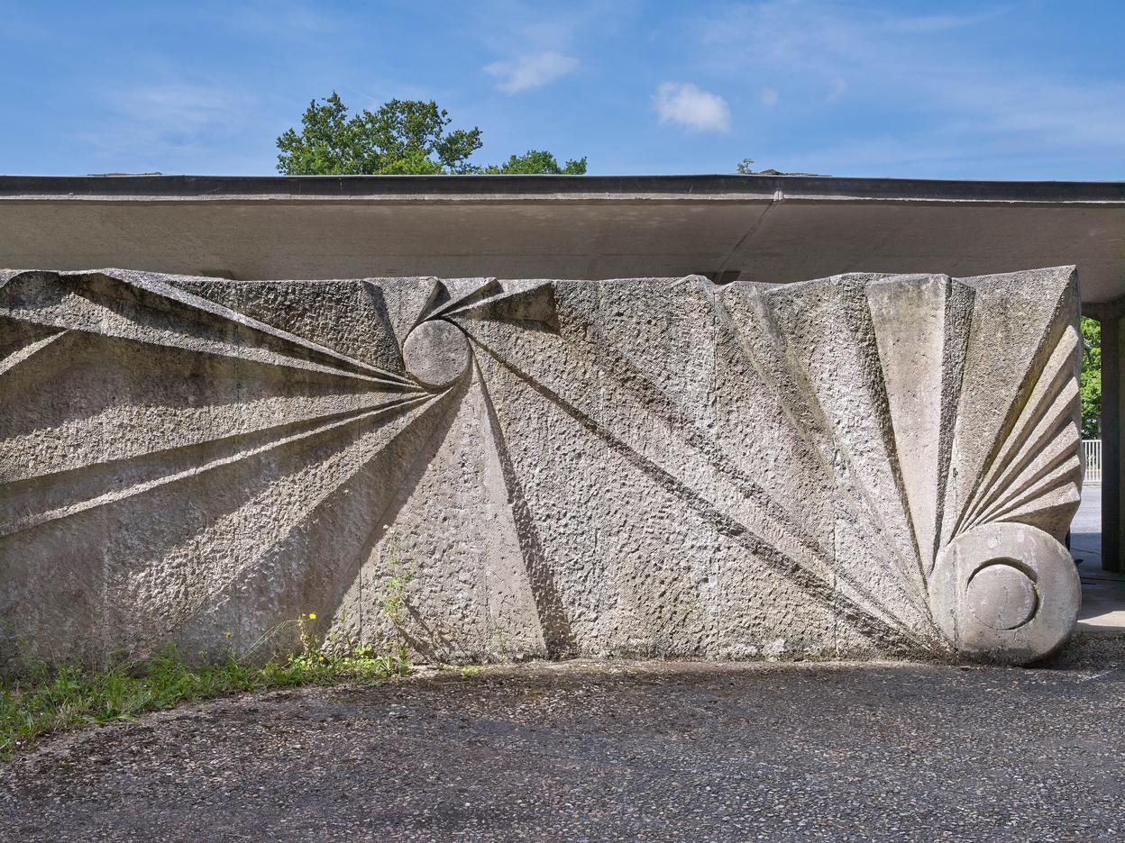 Sculpture "Coupe-Vent" de Yazuo Mizui (1976) : vue partielle de l'un des deux murs.Immatriculation