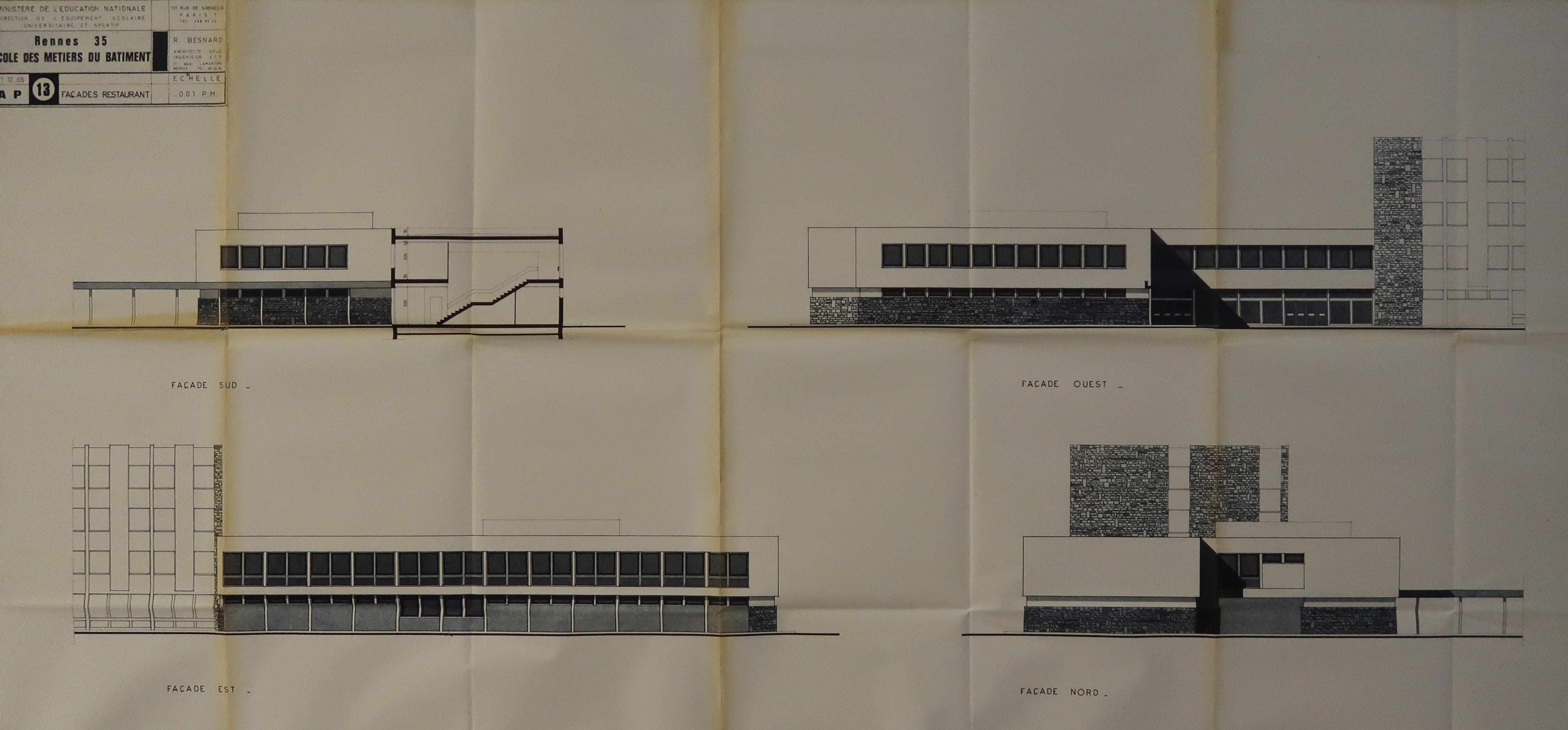 Archives municipales de Rennes : 646 W 72. Besnard [Roger], Jeu de plans de l'Ecole des métiers du bâtiment, 1969.
