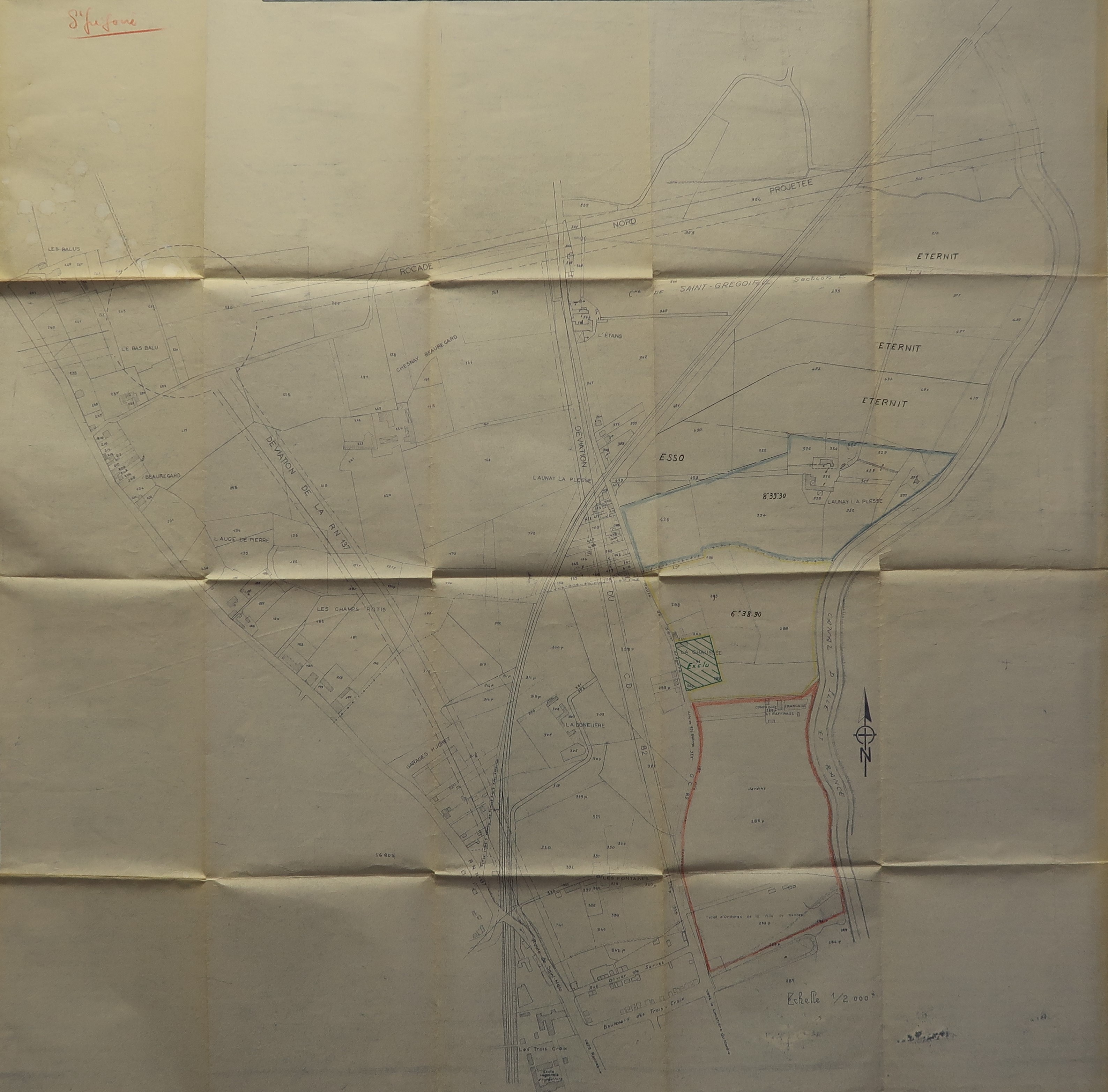 Plan des terrains à acquérir, sur les communes de Rennes et Saint-Grégoire (vers le milieu des années 1960)Immatriculation