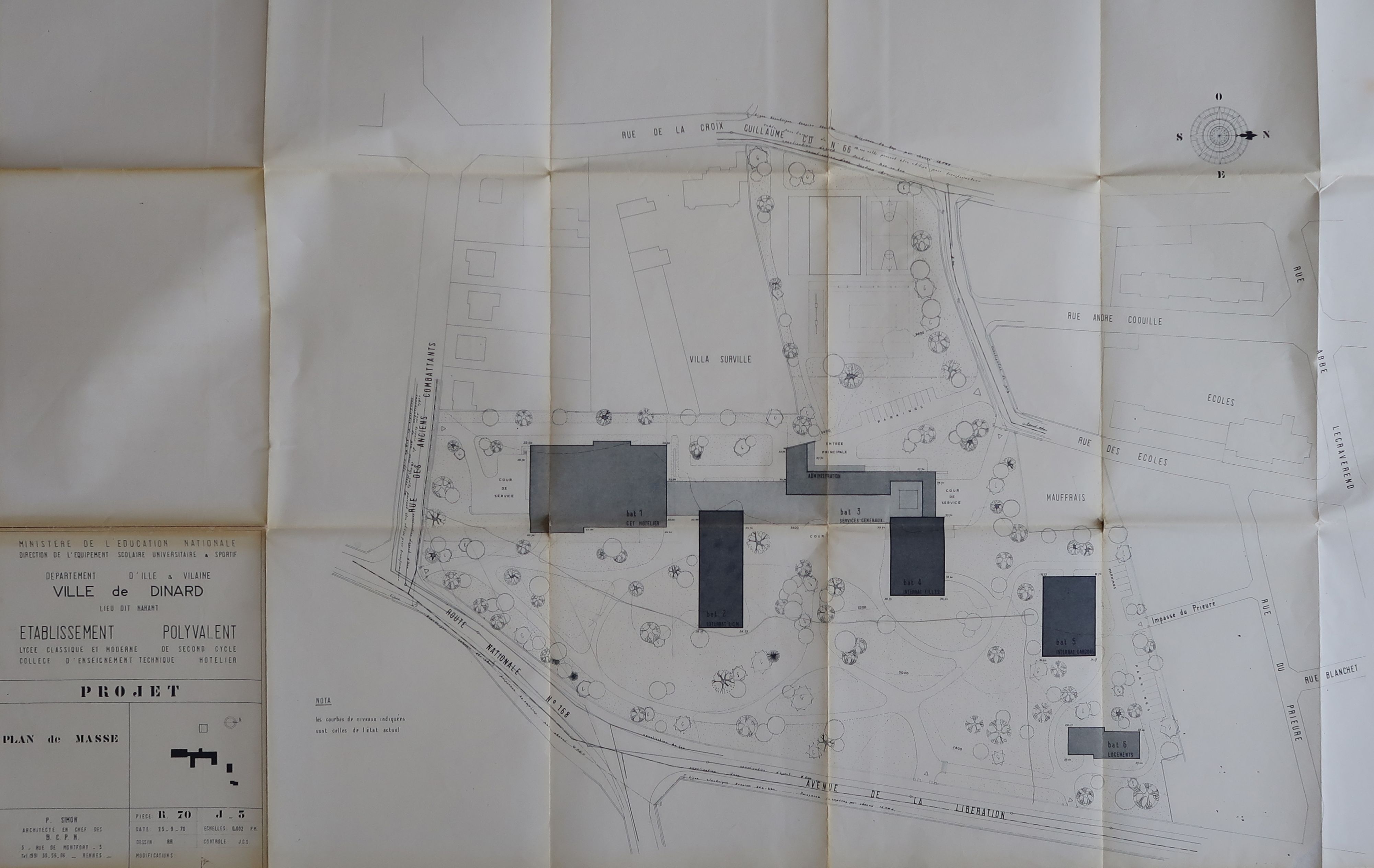 Plan de masse (Patrice Simon, architecte, 25 septembre 1970).Immatriculation