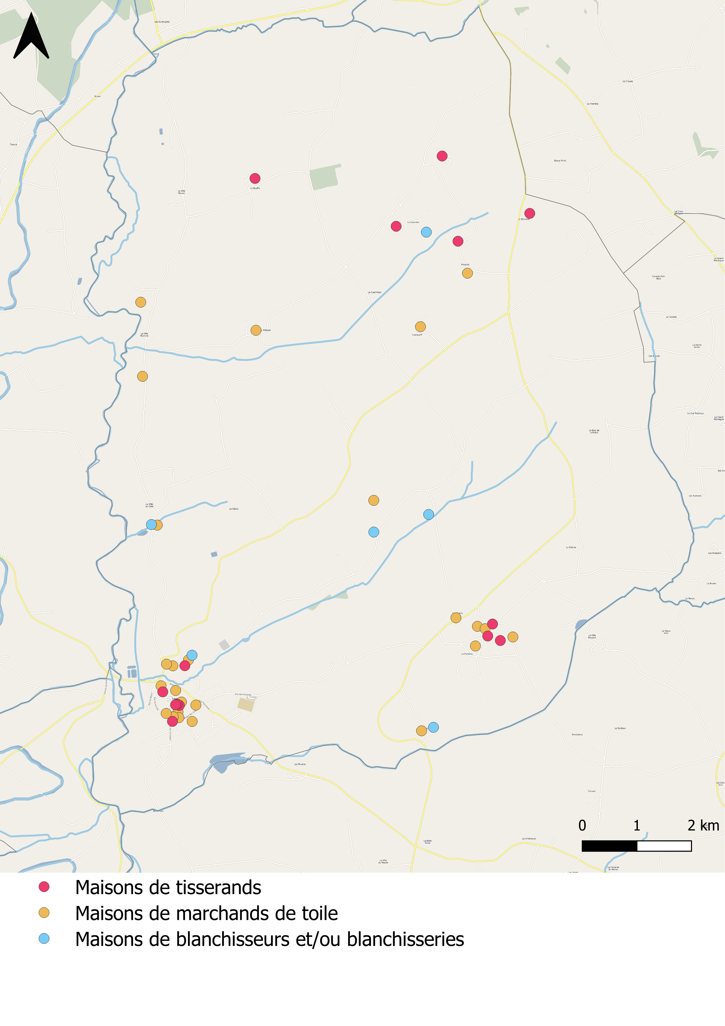 Répartition des maisons de marchands de toile, de tisserands et de blanchisseurs et/ou blanchisseriesImmatriculation