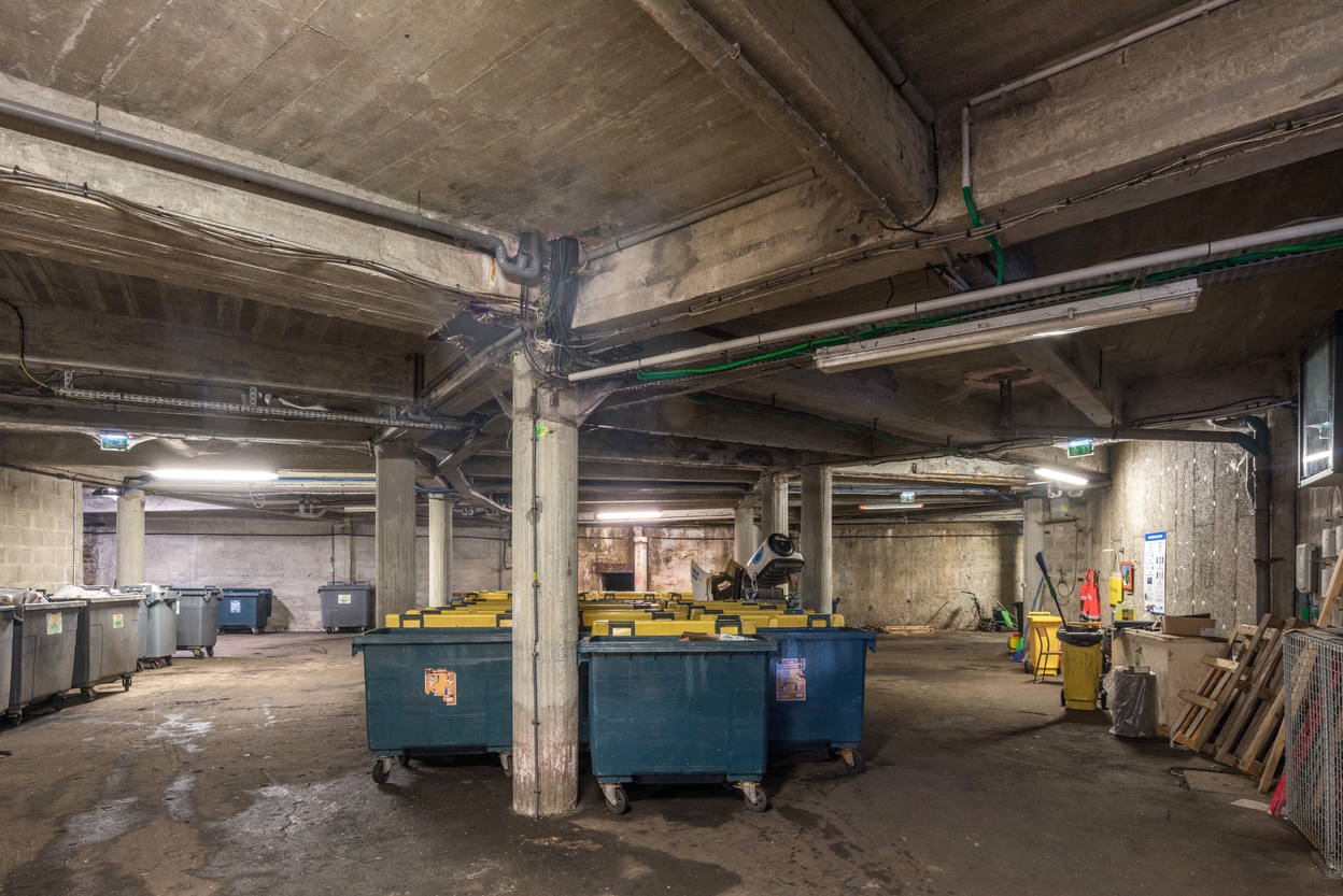 Vue du sous-sol des Halles de Merville : accès au bunker - abriImmatriculation