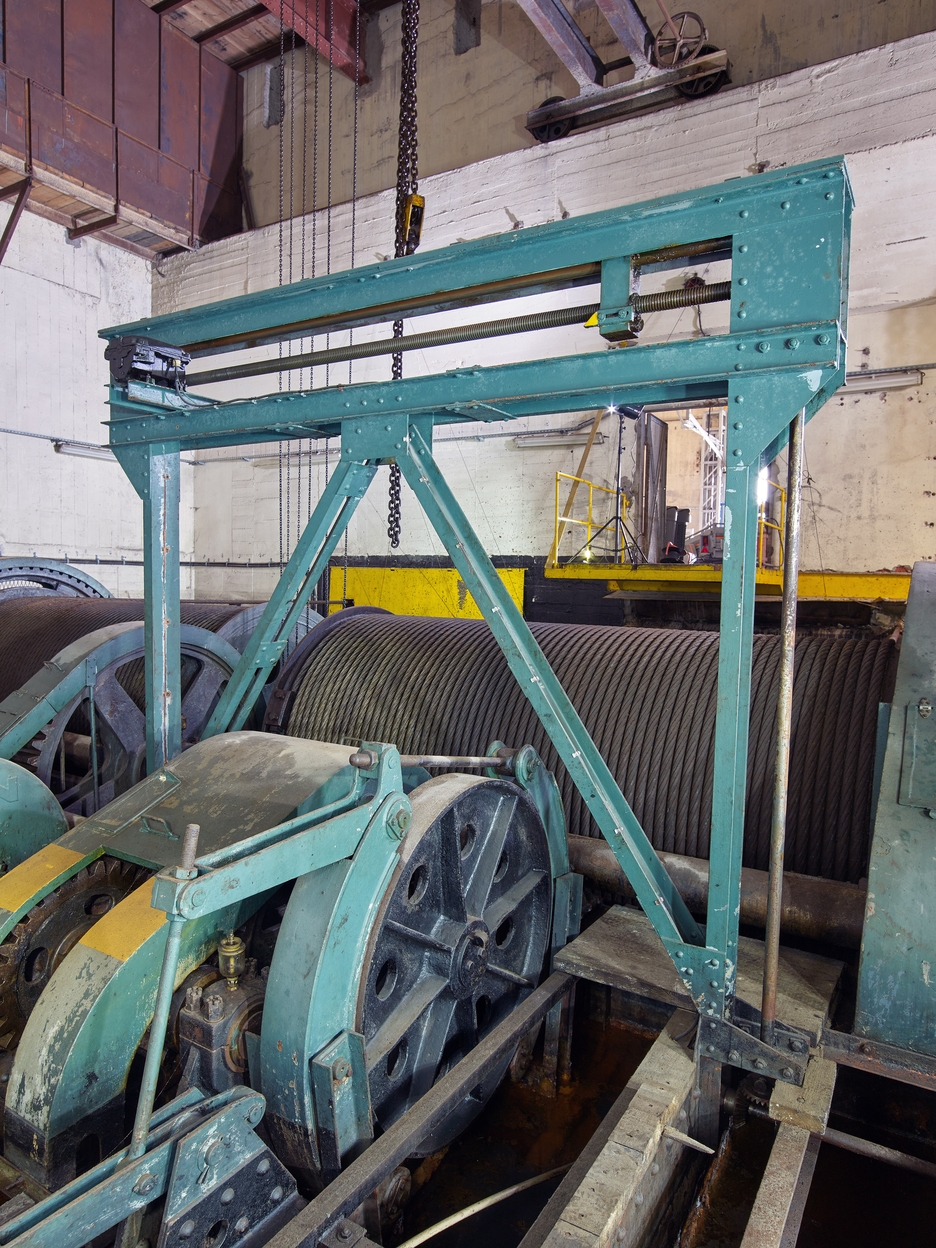 Salle du treuil du slipway du bunker "KI" avec son treuil de hissage (Lorient),