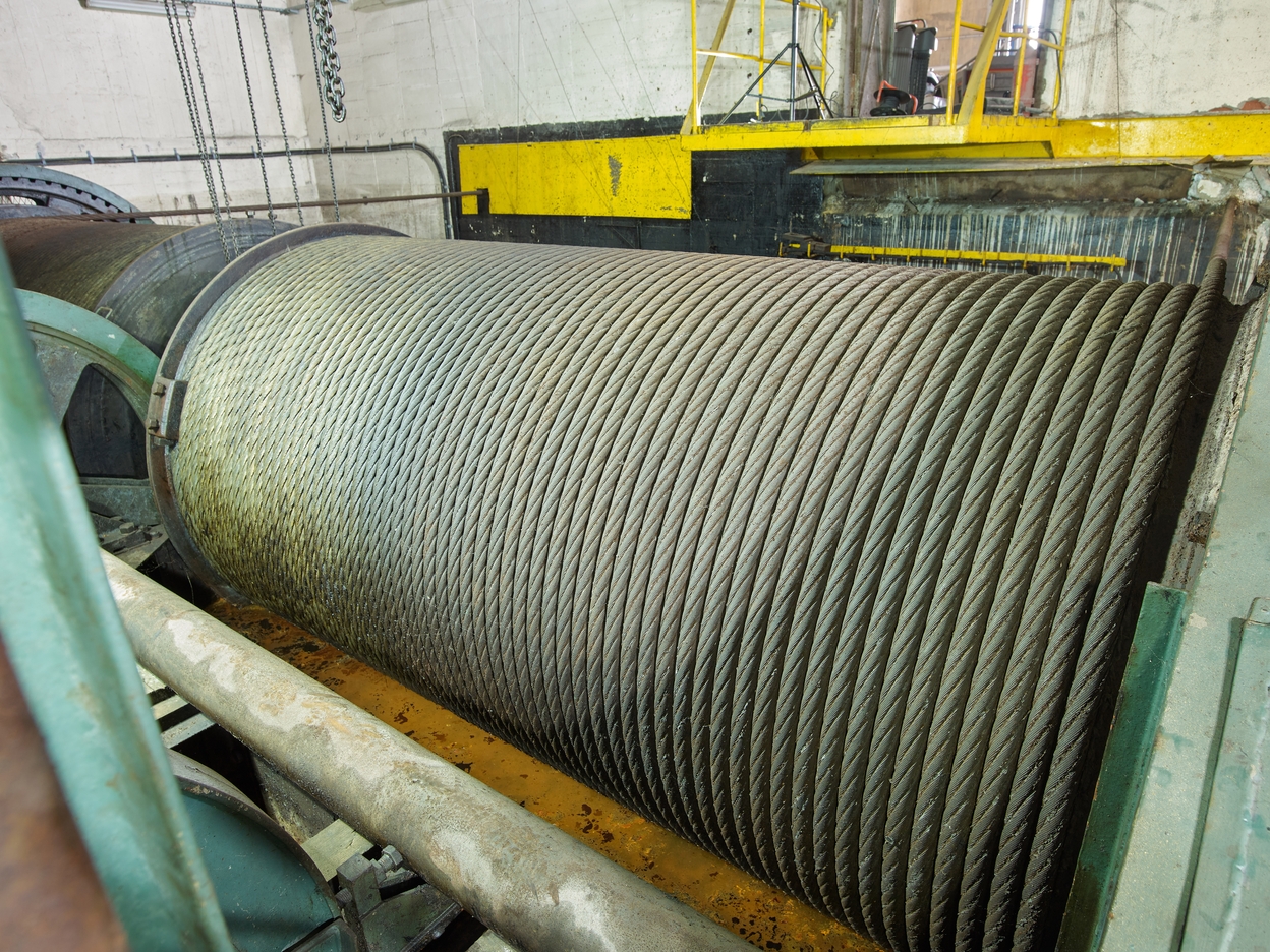 Vue de l'un des deux tambours du treuil sur lequel est enroulé le câble. Les tambours mesurent 2 m de diamètreImmatriculation