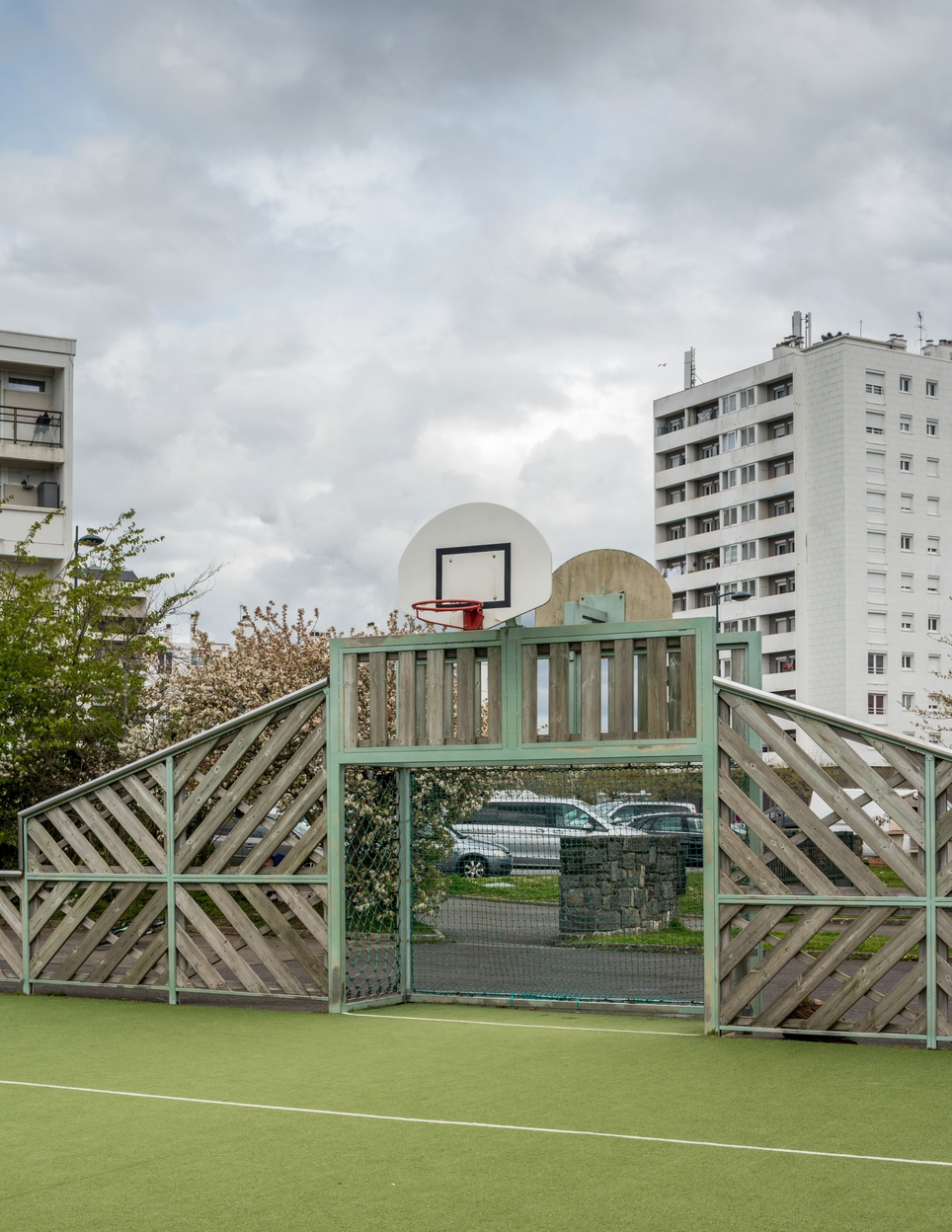 Terrain de basket sur herbe, à proximité de la façade nord de la salle Jean Zay.Immatriculation