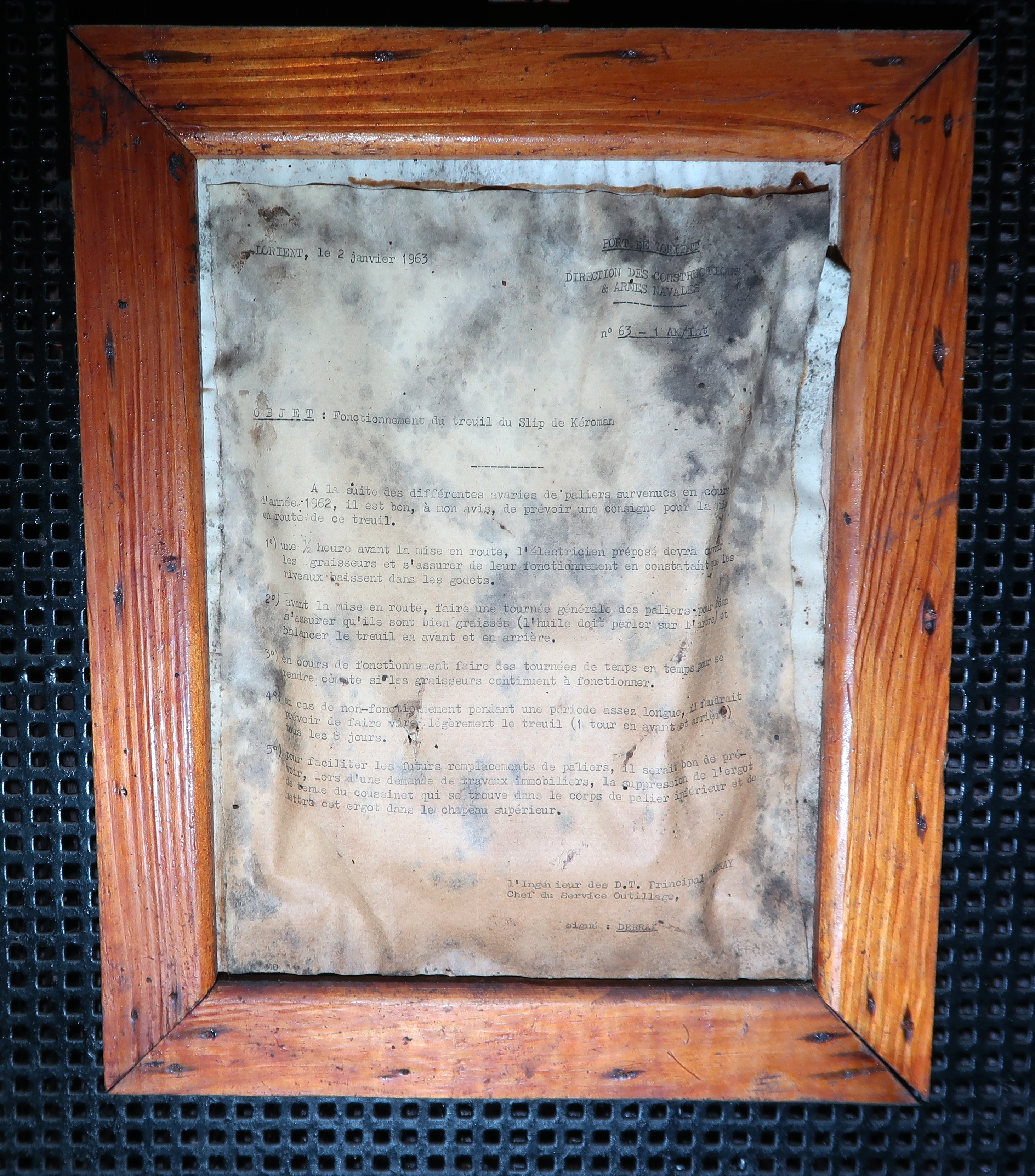 Vue de la circulaire de l’ingénieur Debray concernant le bon fonctionnement du treuil, 2 janvier 1963Immatriculation