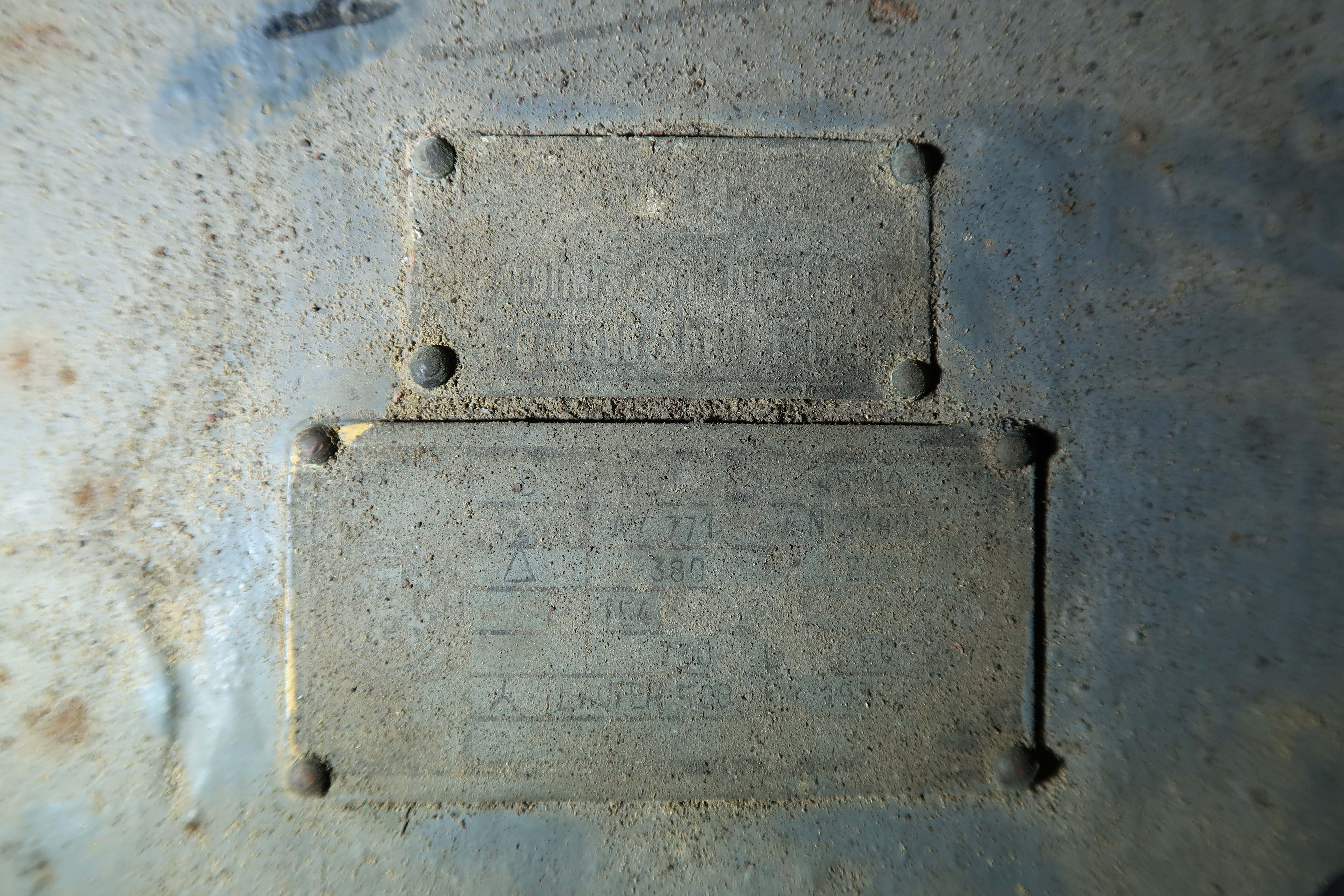 Vue de la plaque constructeur situé sur le moteur électrique (elle est malheureusement quasiment illisible)Immatriculation