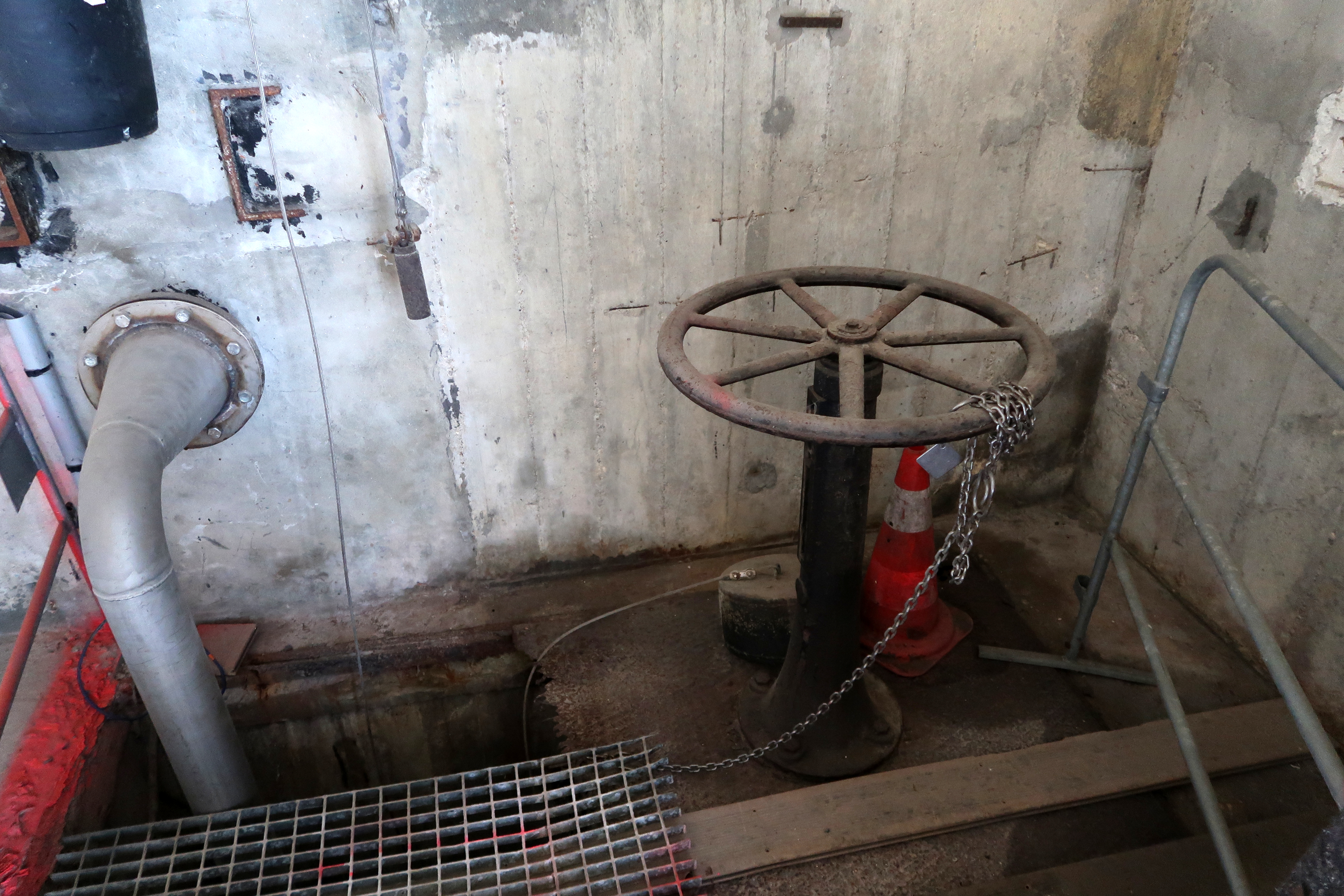 Vue de la vanne située dans l'atelier de la chaudronnerie, magasin puis atelier du Port de La Base de LorientImmatriculation