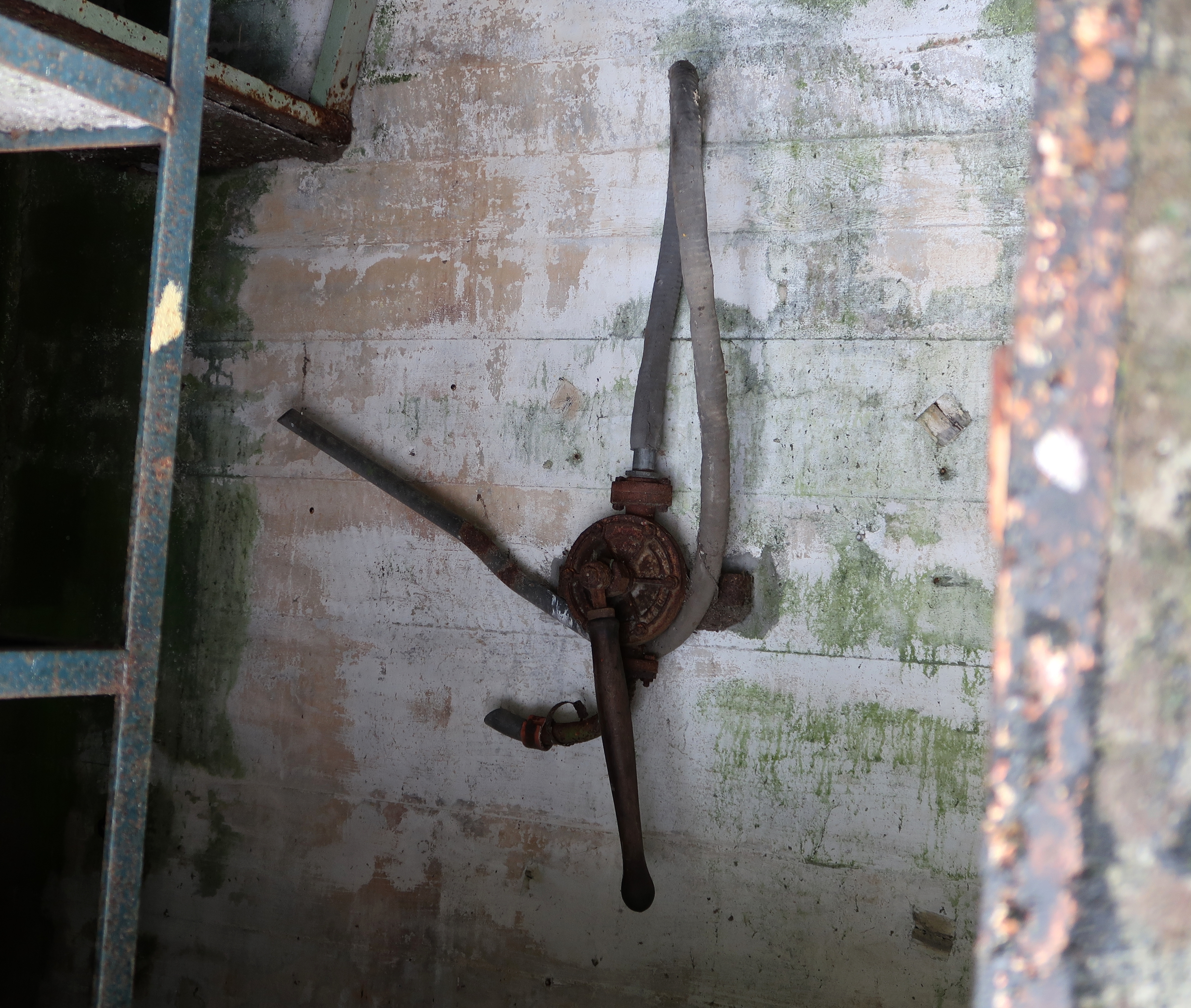 Vue de la vanne (ou pompe de transfert ?) fixée sur le mur extérieur nord du bunkerImmatriculation