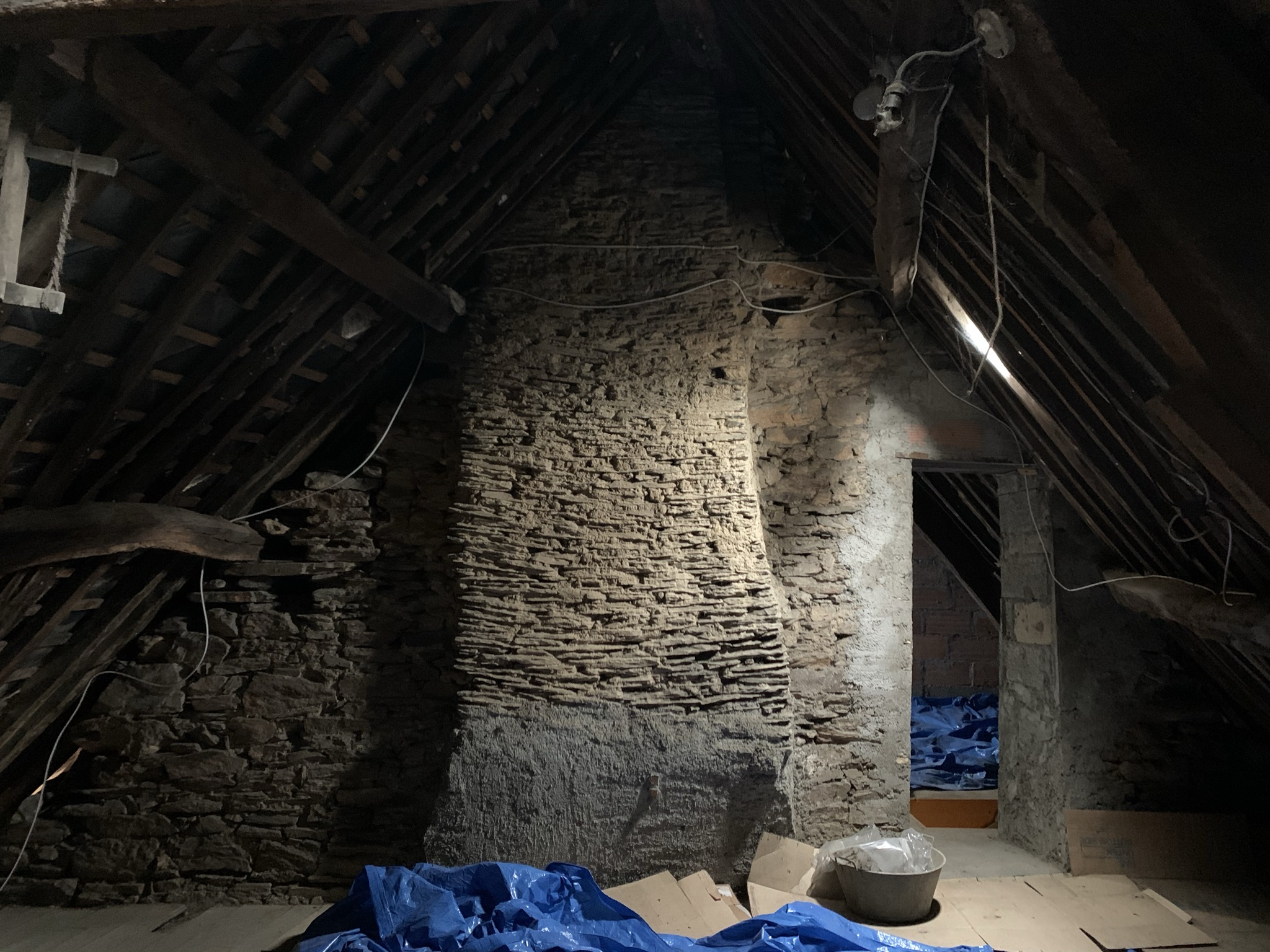 Conduit de cheminée visible dans les combles du n°18.Immatriculation