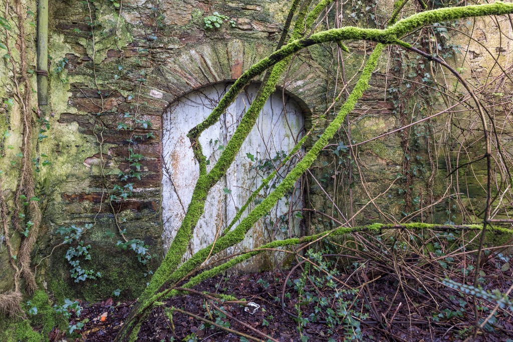 Appentis postérieur. Détail de la porte en arc segmentaire, à claveaux de schisteImmatriculation